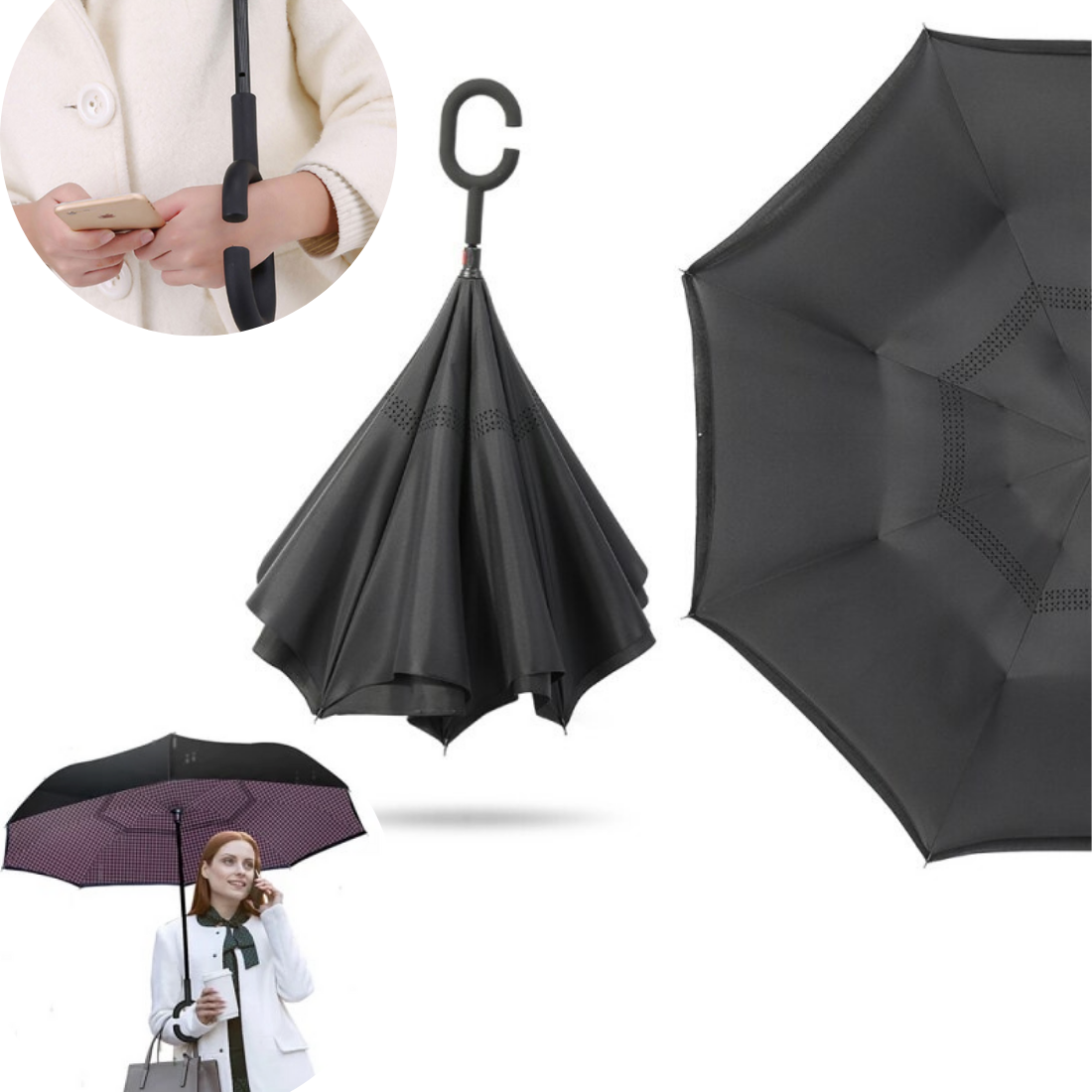 Unikālā konstrukcija, atšķirībā no tradicionālajiem lietussargiem, pēc salocīšanas ūdens paliek iekšā, nepil un neslapina grīdu.