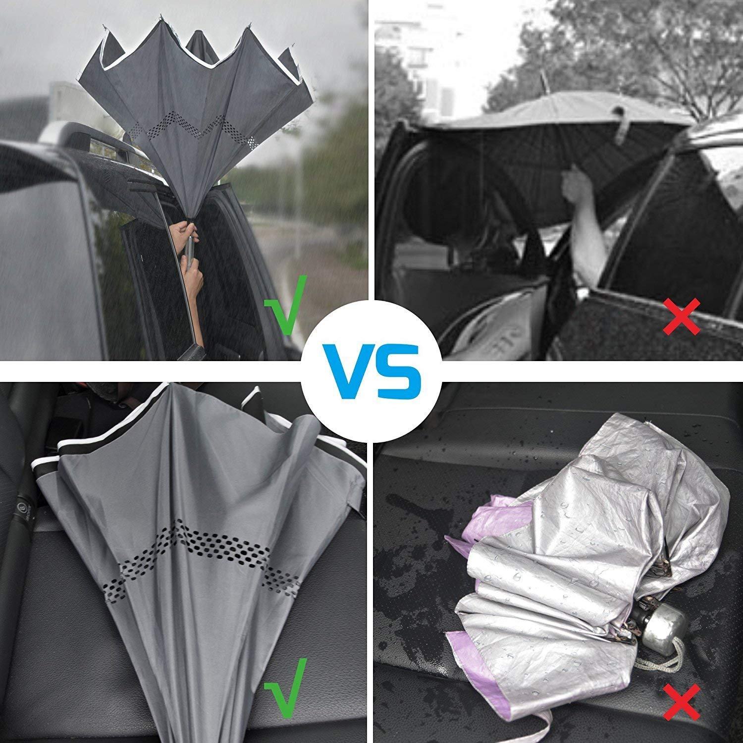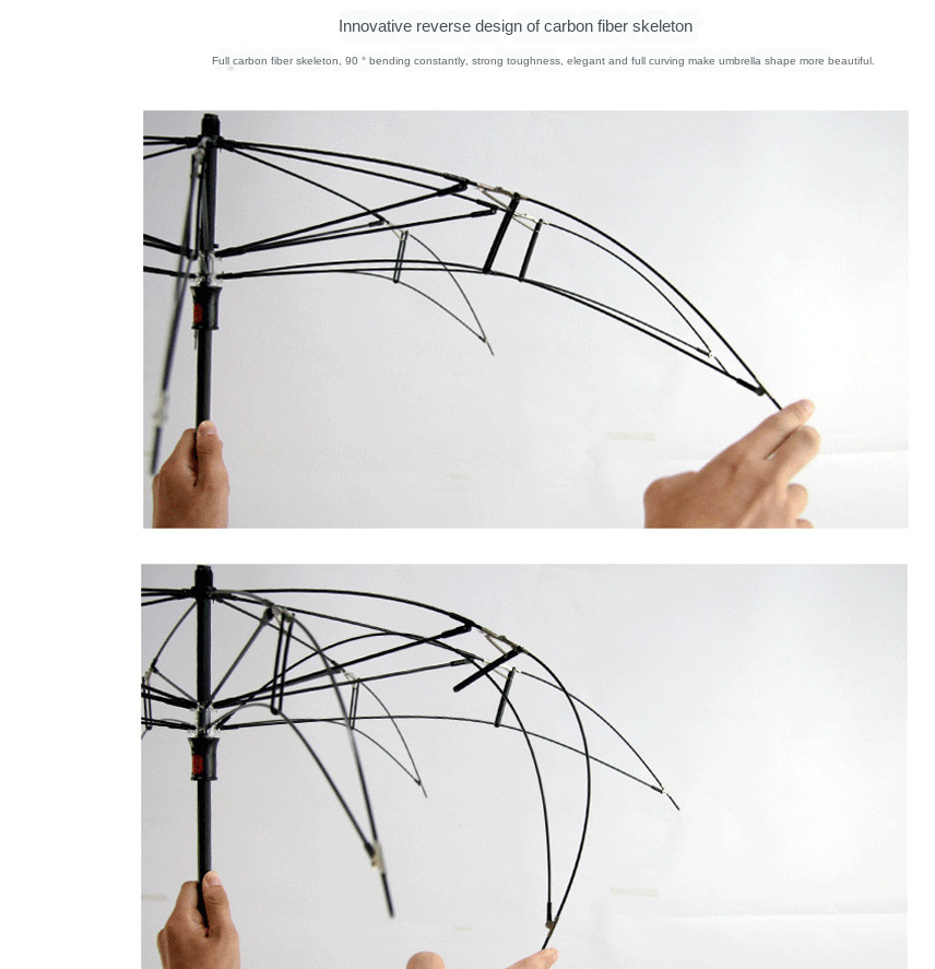 Divslāņu stiklšķiedras ribas nodrošina izcilu vēja pretestību, un lietussargs ir aprīkotas ar inversijas tehnoloģiju, kas ļauj visam rāmi apgriezties ļoti stipru vēja brāzmu laikā, lai novērstu ribu lūzumu.