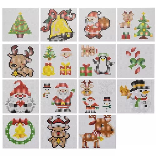 kvadrātveida formām un Ziemassvētku rakstiem jūsu bērns var izkārtot un