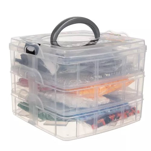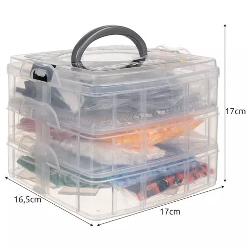 * Trīsstāvu futrālis , kurā ir nodalījumi krellēm un aksesuāriem.