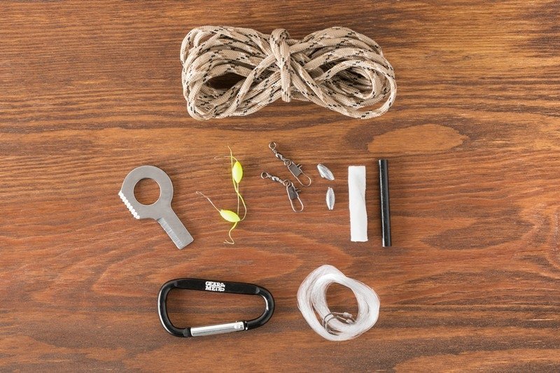 Izdzīvošanas granāta ar dzīvībai svarīgu aprīkojumu. Lieliska dāvana visiem piedzīvojumu atkarīgiem cilvēkiem. Tas var palīdzēt daudzās krīzes situācijās aizdedzināt, noķert zivis, izveidot vienkāršu pajumti utt. Funkcijas: - Izdzīvošanas granāta ar 3,5 m garu parakorda virvi - ideāls aksesuārs kempingiem, makšķerēšanai, medībām, pārgājieniem un citām āra aktivitātēm - lieliski ērts visiem izdzīvošanas gadījumiem - viegls, kompakts un daudzfunkcionāls padara jūsu iepakojumu daudz vieglāku āra aktivitāšu laikā - komplektā ietilpst: - karabīne - naža asmens - kokvilnas skārds - alumīnija folija 17,5x18 cm - grozāmie elementi - 2 atsvari - 2 makšķerēšanas āķi - 2 pludiņi - makšķeraukla - parakorda virves statiskā izturība: līdz 250 kg - krāsa: tuksneša kamo (pieejamas arī 3 citas krāsas) - Gear me up zīmols