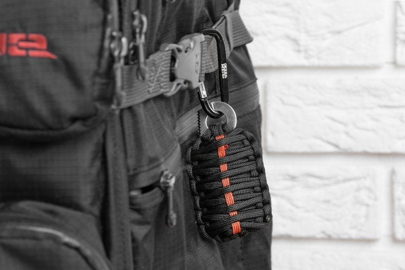 Izdzīvošanas granāta ar dzīvībai svarīgu aprīkojumu. Lieliska dāvana visiem cilvēkiem, kuri ir atkarīgi no piedzīvojumiem. Tas var palīdzēt daudzās krīzes situācijās aizdedzināt, noķert zivis, izveidot vienkāršu pajumti utt. Funkcijas: - Izdzīvošanas granāta ar 3,5 m garu parakorda virvi - ideāls aksesuārs kempingiem, makšķerēšanai, medībām, pārgājieniem un citām āra aktivitātēm - lieliski ērts visiem izdzīvošanas gadījumiem - viegls, kompakts un daudzfunkcionāls padara jūsu iepakojumu daudz vieglāku āra aktivitāšu laikā - komplektā ietilpst: - karabīne - naža asmens - kokvilnas skārds - alumīnija folija 17,5x18 cm - grozāmie elementi - 2 atsvari - 2 makšķerēšanas āķi - 2 pludiņi - makšķeraukla - parakorda virves statiskā izturība: līdz 250 kg - krāsa: melna (pieejamas arī 3 citas krāsas) - Gear me up zīmols