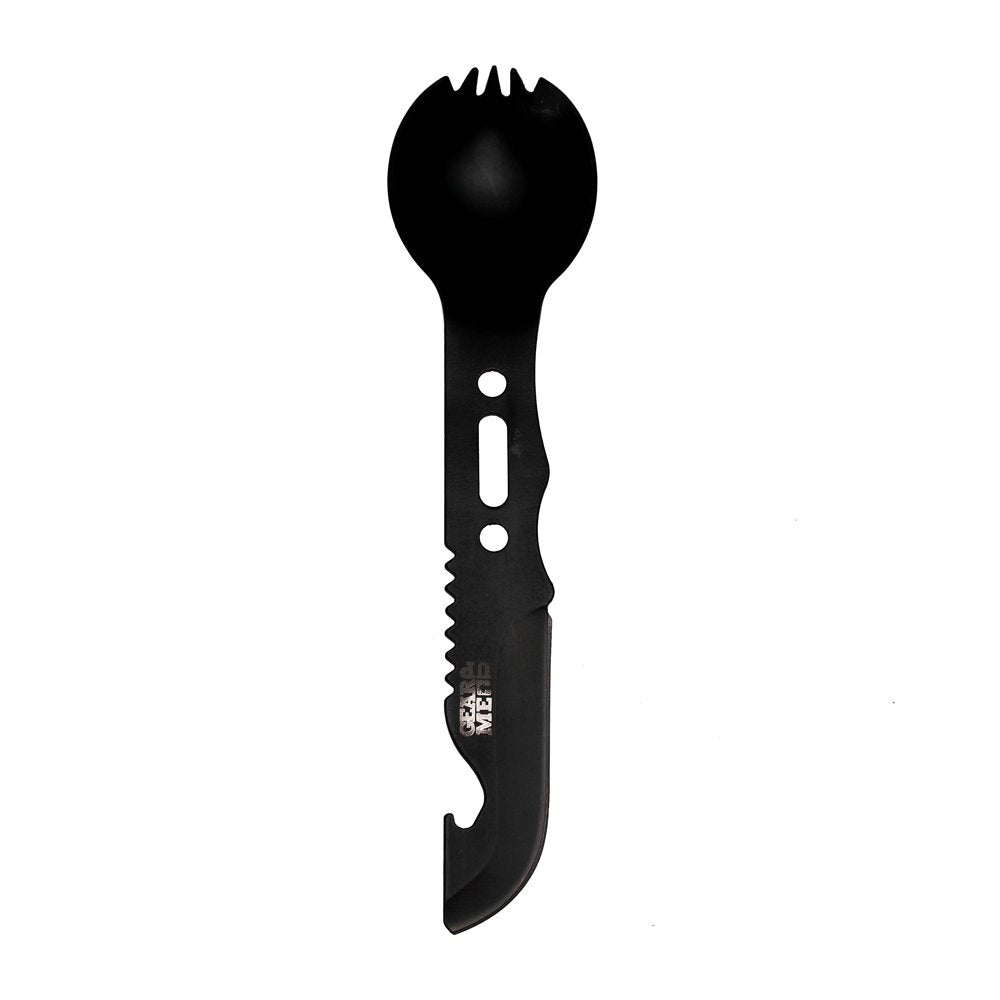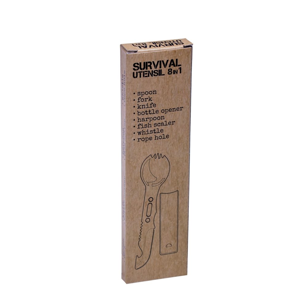 Izdzīvošanas sviras 8in1, jo jūs nekad nezināt, kad jums ir nepieciešamas Funkcijas: - Izdzīvošanas trauks 8in1 - karote, dakša, nazis, pudeļu nazis, harpūna, zivju skalošanas līdzeklis, svilpe, virves caurums - t.sk. plastmasas maciņš, kurā vienlaikus ir svilpe un virve (120 cm) - izgatavots no nerūsējošā tērauda un plastmasas (casesvilpe) - lieliska dāvana ne tikai izdzīvošanas ķēmiem, tūristiem, makšķerniekiem, sēņotājiem utt. - Zīmols: gear me up
