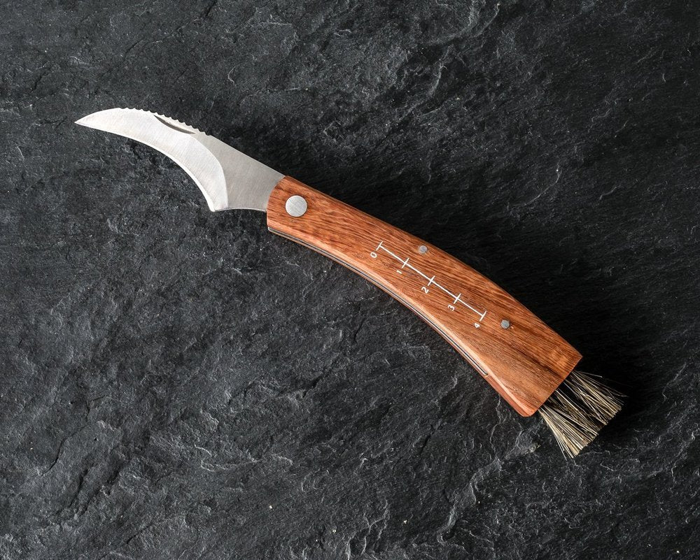 Funkcijas: - izliekts sēņu nazis ar koka rokturi - asa griešanas mala no augstas kvalitātes nerūsējošā tērauda