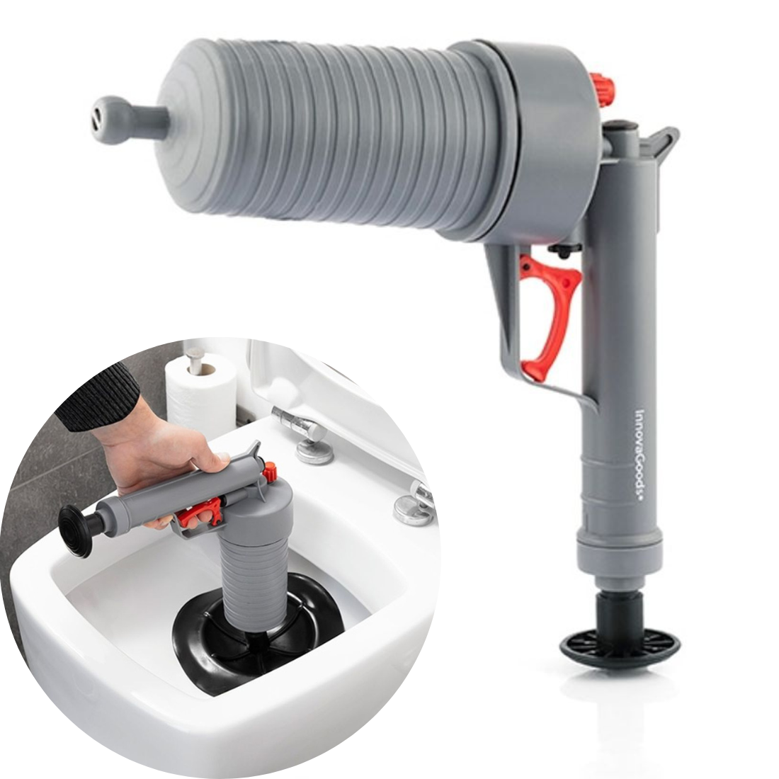 Saspiestā gaisa pistole (vakuuma pumpis), kas ir ļoti efektīva, lai viegli noņemtu netīrumus no visa veida kanalizācijas virtuvēs, vannas istabās, terasēs utt. Ietver 4 dažāda izmēra universālus adaptera piederumus. Ierīce ļauj veikt tīrīšanu videi draudzīgā veidā, neizmantojot ķīmiskus vai toksiskus produktus. Ideāli piemērots virtuves izlietņu atbloķēšanai, kur parasti uzkrājas pārtikas atkritumi, lai gan tas ir ļoti noderīgi arī izlietņu, vannu, dušu u.tml. atbloķēšanai. Šis rokas instruments ir ļoti ērti lietojams (iekļauta rokasgrāmata ar lietošanas instrukciju).