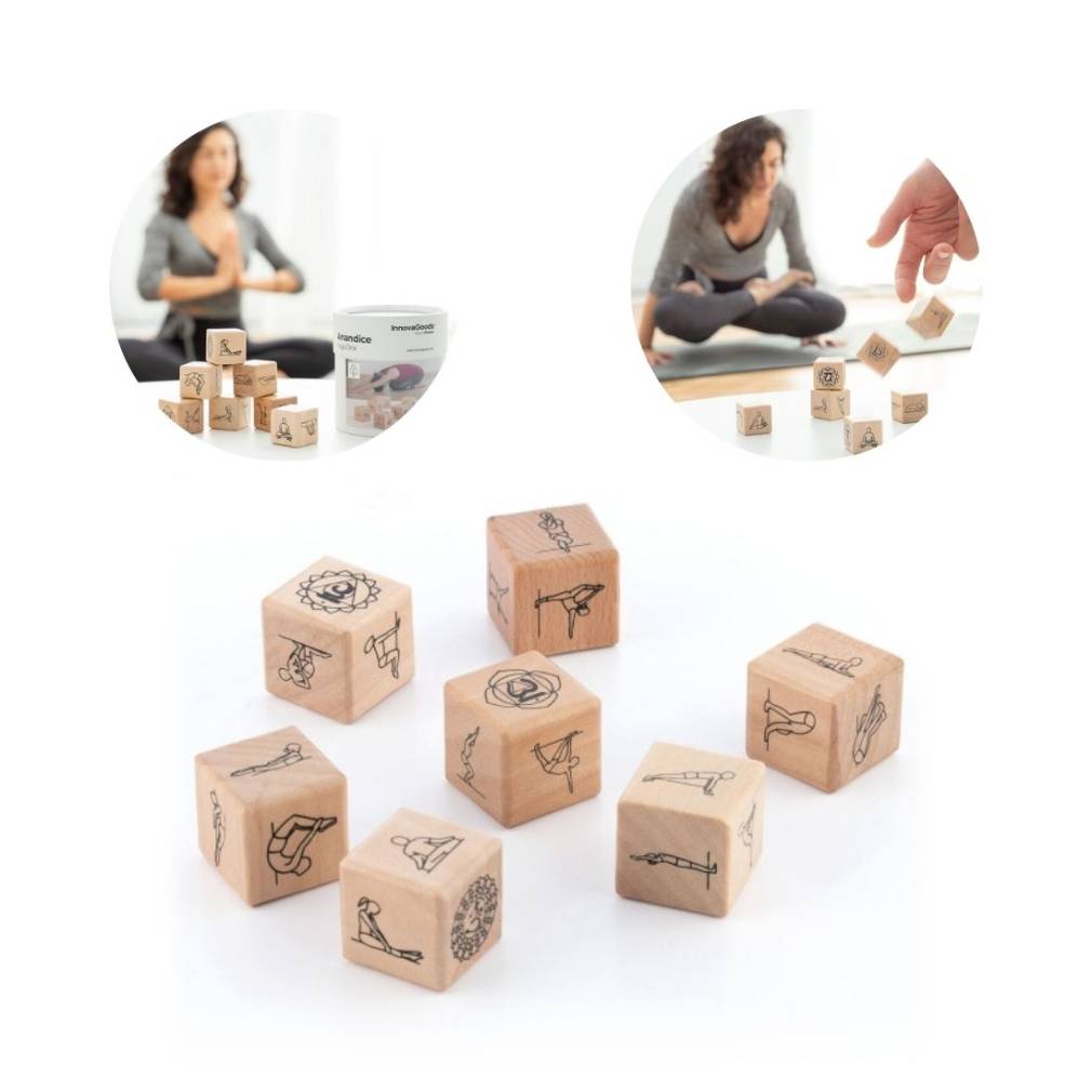 * Septiņi koka kauliņi ar dažādām pozām katrā pusē