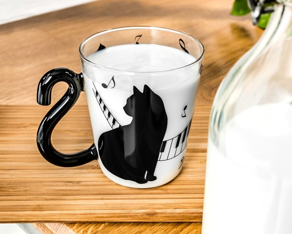 Jauks kaķu glāze ar smieklīgu astes rokturi, burvīgs un jauks. Funkcijas: - kaķa glāze ar astes rokturi un mūzikas rakstu - ar rokām pūsts, roku darbs, videi draudzīgs borsilikāta glāze - augsta karstumizturība un amp; izturīgs - lieliska dāvanu ideja kaķu mīļotājiem daudziem gadījumiem - mazgāšana tikai ar rokām, lai lietošana būtu ilgstoša - tilpums 300 ml - jauka krāsu dāvanu kastīte