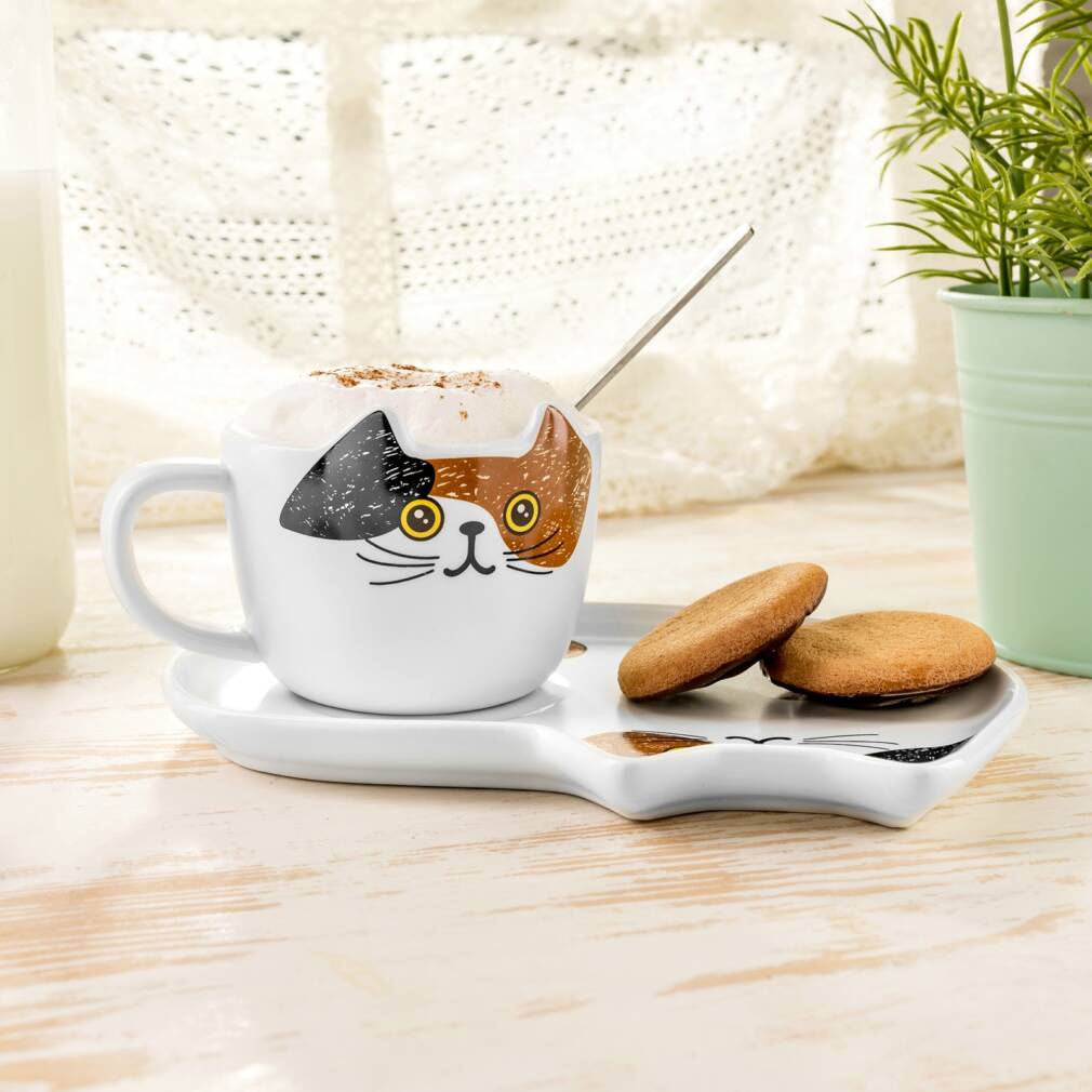 Izbaudiet mūsu jauko kaķu krūzīšu un apakštasīšu komplektu ar maigu metāla maisītāju, dzerot savu iecienīto kafiju, tēju vai kakao. Jauka dāvanu ideja jūsu visiem kaķu mīļotājiem daudzos gadījumos, jo labāk dzīvot ar kaķiem :) Krūzītei un apakštasītei ir smieklīga kaķa seja un ausis, un uz apakštasītes vienmēr varat uzlikt kaut ko saldu :) Funkcijas: - unikāls un amp; jauks kaķa krūzīšu un apakštasīšu komplekts ar maigu metāla maisītāju - kafijai, tējai, kakao un amp; biskvīts - izbaudiet īpašu laiku ar mūsu kaķu komplektu - precīza krūzes tilpums 220 ml - apakštasītes izmērs 19,7x1,8x1,8 cm - krūzes izmērs 6x8x11,5 cm - metāla maisītāja izmērs: 15 cm - mazgāt tikai ar rokām - nelietot mikroviļņu krāsnī - jauka krāsu dāvanu kastīte