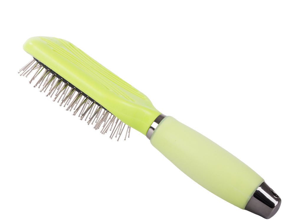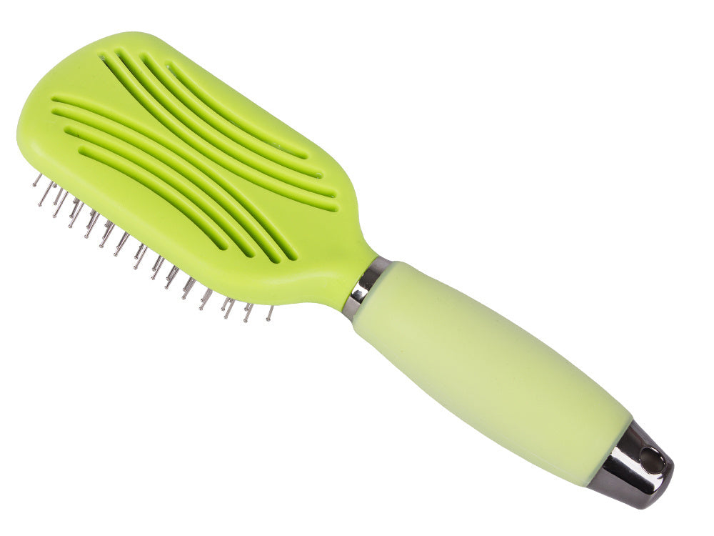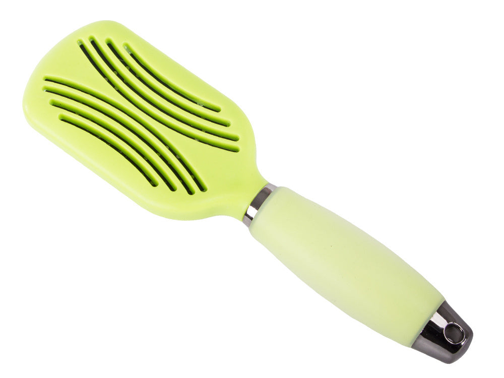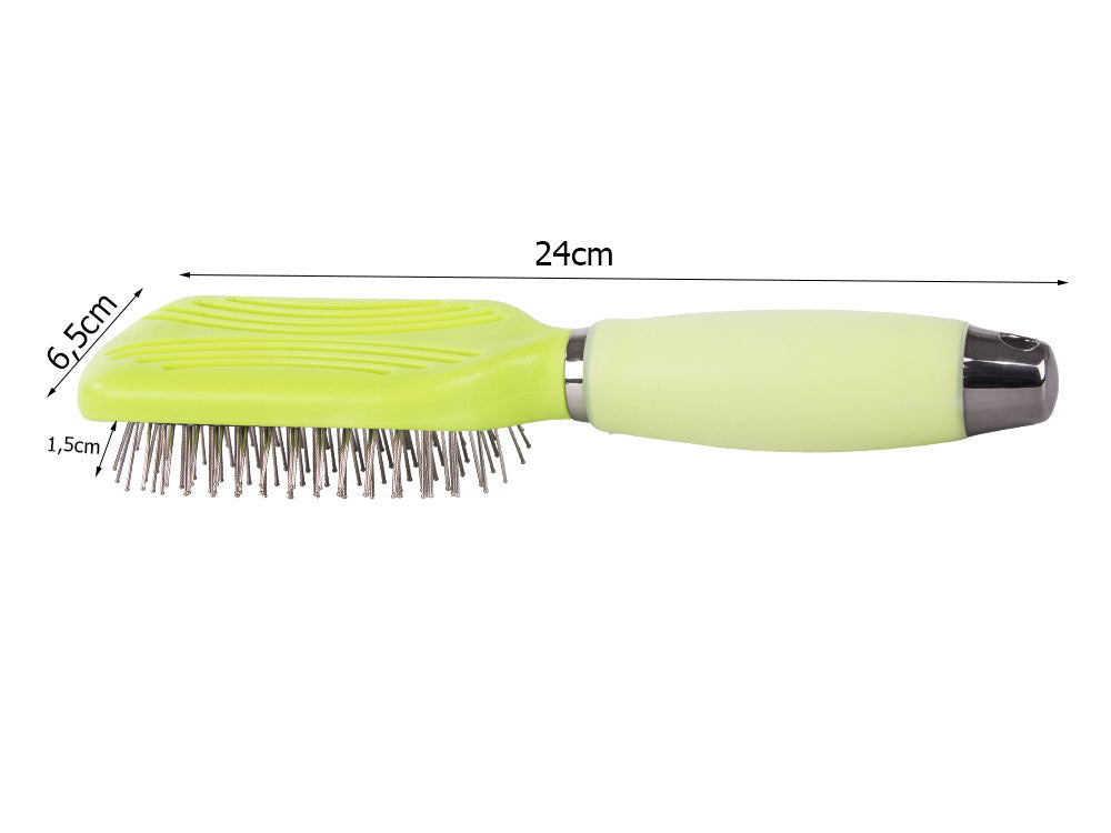 Kaķu spalvu birste suņu pašattīroša kopšanas ķemme mājdzīvnieku birste ir sensacionāla un vienkārša ierīce, lai ātri atbrīvotos no pavilnas un izkrītoša apmatojuma suņiem, kaķiem vai zirgiem. Tā palīdz uzturēt veselīgu un spīdīgu kažoku un pat samazina apmatojuma izkrišanu par 90%. Birstes galā ir adatas, kas beidzas ar bumbiņu, lai nesavainotu mājdzīvnieku ķemmēšanas laikā un padarītu ķemmēšanu par prieku. Rokturis ir izgatavots no gumijas un neslīd no rokas. Ierīce lieliski darbosies gan ar maziem, gan lieliem dzīvniekiem. Tehniskās specifikācijas - mājdzīvnieku apmatojuma izķemmēšanai - palīdz uzturēt veselīgu un spīdīgu kažoku - ergonomisks neslīdošs rokturis - apmatojumam: garam, īsam, raupjam, vilnainam - pašattīrīšanās mehānisms - izmēri: - krāsa: zaļa Komplektā ietilpst: - mājdzīvnieku birste
