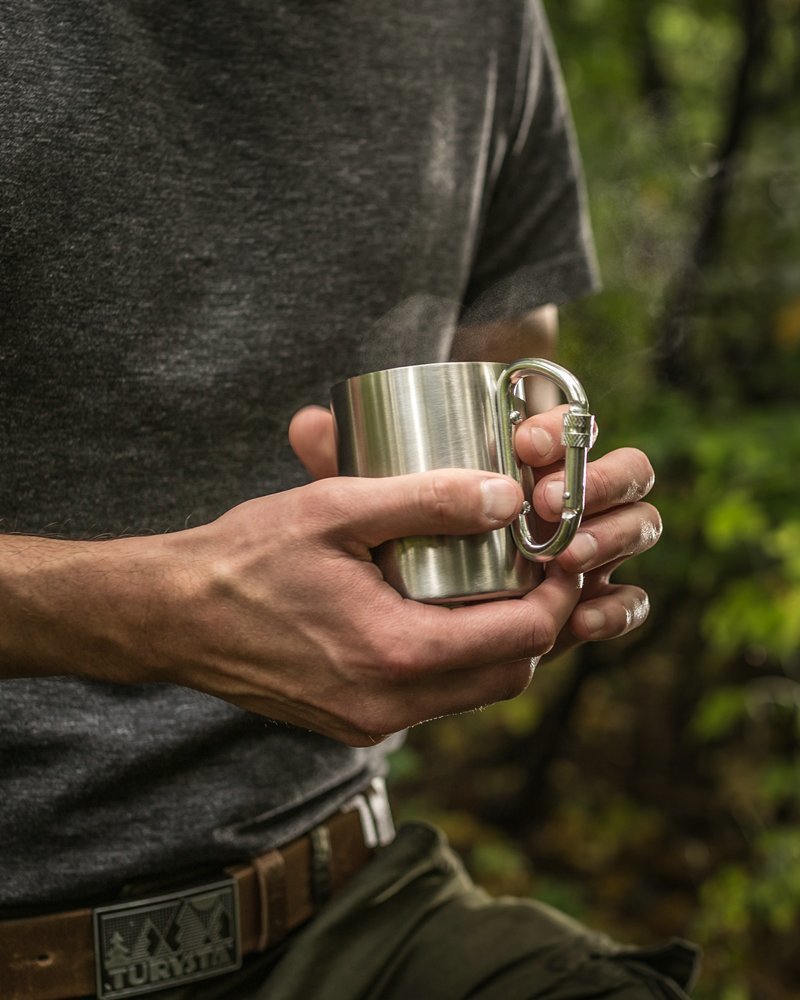 Karabīnes āra krūze ir paredzēta piedzīvojumu meklētājiem, kuri vēlas baudīt savu iecienītāko karsto dzērienu brīvā dabā. Krūze ir izgatavota no augstas kvalitātes nerūsējošā tērauda, kas nodrošina izturību un izturēt bargos āra aktivitāšu apstākļus. Krūzei ir unikāls roktura dizains ieskrūvējamas karabīnes formā, ko var viegli piestiprināt pie mugursomām vai citiem āra piederumiem. . Karabīnes rokturis atvieglo krūzes pārnēsāšanu un nodrošina, ka tā ir droši piestiprināta pie jūsu aprīkojuma, lai jūs varētu palikt brīvroku režīmā. Krūzes dubultsienu konstrukcija nodrošina labāku izolāciju un ilgāk saglabā jūsu dzērienu karstu vai aukstu. periodā. Tas nozīmē, ka varat baudīt savu iecienīto dzērienu, neuztraucoties par to, ka tas pārāk ātri kļūs auksts vai sasilsts. Krūze ir arī paredzēta lietošanai uz atklātas uguns, padarot to lieliski piemērotu kempingiem vai pārgājieniem. Jūs varat viegli uzsildīt dzērienu virs uguns, neuztraucoties par krūzes sabojāšanu vai tās integritātes apdraudējumu. Kopumā nerūsējošā tērauda āra krūze ar karabīnes rokturi un dubultām sienām ir izturīgs, daudzpusīgs un funkcionāls aksesuārs ikvienam, kam patīk izpētīt Lieliska brīvā dabā Īpašības: - nerūsējošā tērauda āra karabīnes krūze - skrūvējams karabīnes rokturis - karabīnes klipa rokturis palīdz piestiprināt pie mugursomas vai biksēm - izgatavots no augstas kvalitātes nerūsējošā tērauda - var karsēt ar cepeškrāsni vai uguni - dubultā siena, lai novērstu kondensāciju un uzturēt dzēriena temperatūru – neplīstošu droša - viegli tīrāma - krāsaina dāvanu kastīte