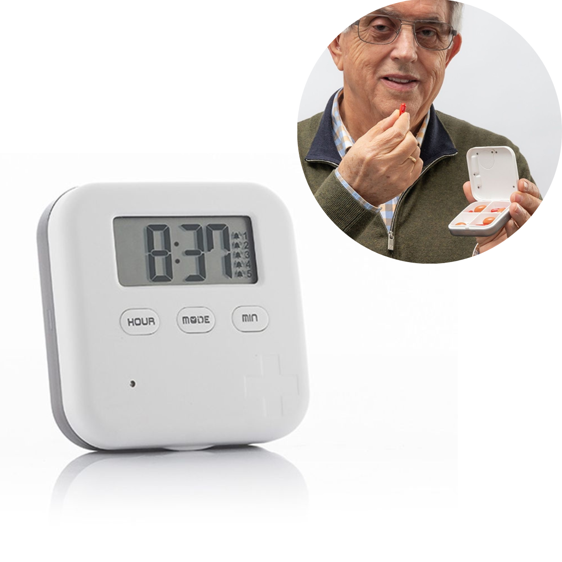 Viedā tablešu kaste, kas ir ļoti noderīga medikamentu uzglabāšanai un palīdz atcerēties iedzert zāles, jo tajā var ieprogrammēt līdz pat 5 ikdienas trauksmes signāliem ar skaņu un vibrāciju. Turklāt kārbas kabatas izmērs ir ļoti praktisks, un tās hermētiskā drošības aizdare novērš mitruma iekļūšanu un uztur iekšpusē esošās tabletes ideālā stāvoklī.