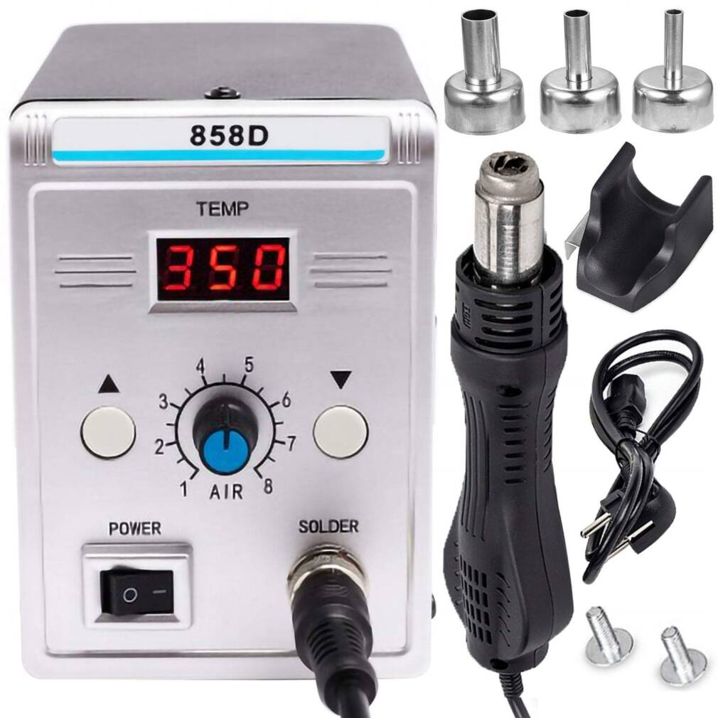 Komplektā ietilpst karstā gaisa lodāmurs, barošanas vads ērtai pievienošanai un trīs maināmas sprauslas ar dažādu diametru dažādiem uzdevumiem. Šī profesionālā līmeņa ierīce piešķir prioritāti lietotāju drošībai un komfortam, padarot to par ideālu izvēli plašam lietojumu klāstam. Ar savu precīzo temperatūras kontroli, efektīvu gaisa plūsmu un visaptverošu komplektu šī profesionālā līmeņa ierīce nodrošina ērtības un uzticamību visām jūsu lodēšanas vajadzībām.