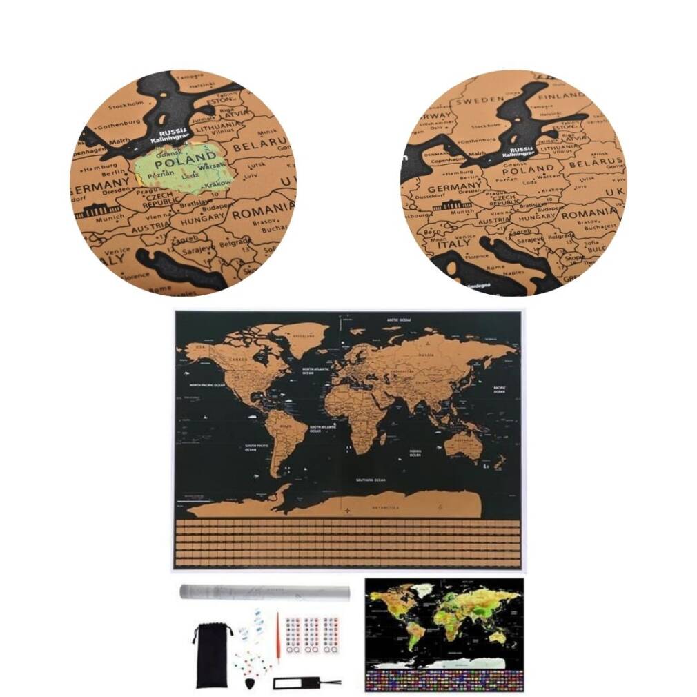 Apmeklējot dažādas valstis, noskrāpējiet kartes apgabalus, lai izveidotu unikālu