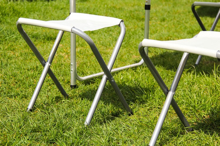 Šajā kempinga komplektā esošie krēsli ir izturīgi, izgatavoti no auduma ar