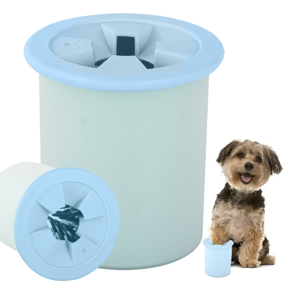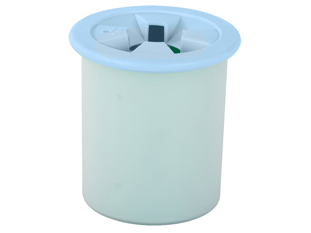 Ķepu tīrītājs suņiem un kaķiem, silikona krūzīte ar silikona sariem S ķepai. Silikona ķepu tīrītājs suņiem un kaķiem ir ļoti ērts un ātrs risinājums, kad mums jānomazgā ķepas pēc dubļiem un citiem netīrumiem no ārpuses. Vienkārši ielejiet krūzītē nelielu daudzumu ūdens un ievietojiet tajā mājdzīvnieka ķepu. Pēc tam dažas reizes pagrieziet krūzīti un noslaukiet suņa ķepas. Silikona krūzīti ir ļoti viegli uzturēt tīru. Tā ir jāiztukšo no netīrā ūdens, jāizņem silikona ieliktnis un jānomazgā zem tekoša ūdens. Tehniskās specifikācijas: - materiāls: plastmasa, silikons - praktisks - viegli lietojams un tīrāms - S izmērs: suņiem un kaķiem ar ķepas diametru līdz 5,5 cm - izmērs: - krāsa: zila. Komplektā ietilpst: - silikona ķepu tīrītājs