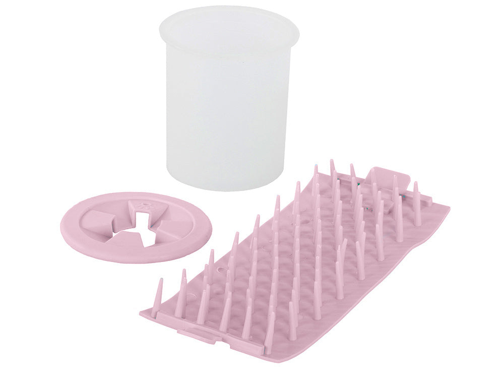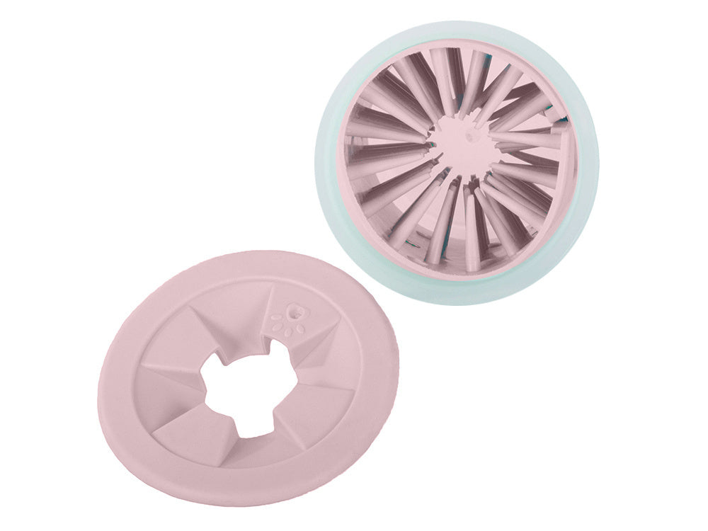 Ķepu tīrītājs suņiem un kaķiem, silikona krūzīte ar silikona sariem S ķepā. Silikona ķepu tīrītājs suņiem un kaķiem ir ļoti ērts un ātrs risinājums, kad mums ir jānomazgā ķepas pēc dubļiem un citiem netīrumiem no ārpuses. Vienkārši ielejiet krūzītē nelielu daudzumu ūdens un ievietojiet tajā mājdzīvnieka ķepu. Pēc tam dažas reizes pagrieziet krūzīti un noslaukiet suņa ķepas. Silikona krūzīti ir ļoti viegli uzturēt tīru. Tā ir jāiztukšo no netīrā ūdens, jāizņem silikona ieliktnis un jānomazgā zem tekoša ūdens. Tehniskās specifikācijas: - materiāls: plastmasa, silikons - praktisks - viegli lietojams un mazgājams - S izmērs: suņiem un kaķiem ar ķepas diametru līdz 5,5 cm - izmērs: - krāsa: rozā. Komplektā ietilpst: - silikona ķepu tīrītājs