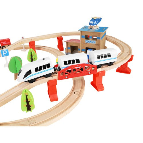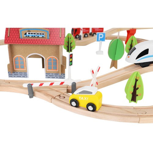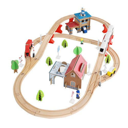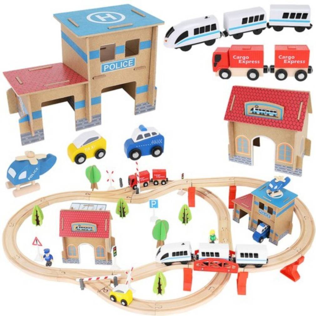 Šis koka vilciena sliežu komplekts ir lieliska dāvana, kas patiks ikvienam