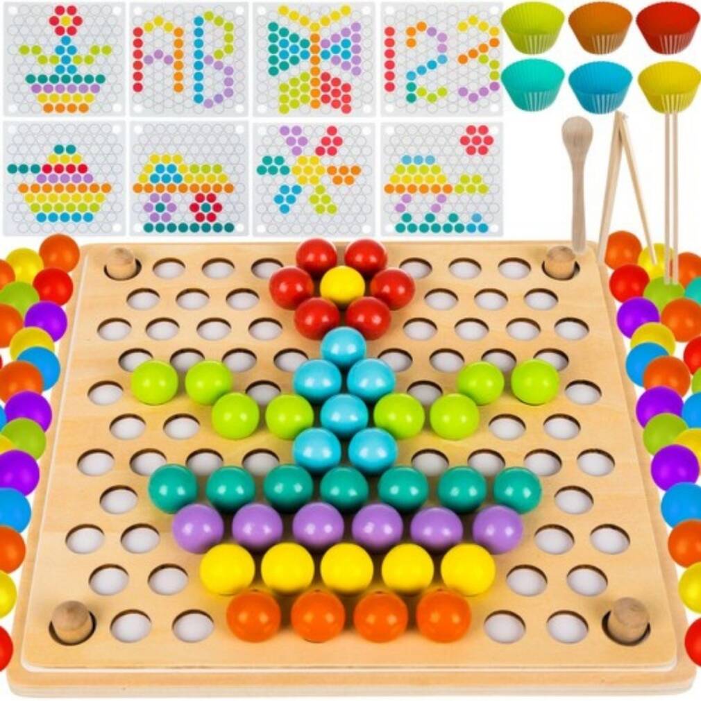 Šī rotaļlieta ir izgatavota no kvalitatīva koka. Spēlējoties ar bumbiņām, bērni var uzlabot savas prasmes, acu un roku koordināciju un loģiskās domāšanas prasmes. Tā ir arī