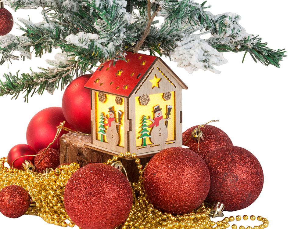 Koka piekaramā laterna Ziemassvētku eglītes apgaismojumam – Ziemassvētku rotājums – sniegavīrs. Ienesiet savās mājās Ziemassvētku maģisko atmosfēru ar šo unikālo Ziemassvētku laternu ar integrētu LED apgaismojumu. Šī burvīgā laterna ir ideāls Ziemassvētku rotājums, kas iepriecinās gan mājsaimniecības locekļus, gan viesus. Laterna ir izgatavota no dabīga koka, un tai ir smalki zvaigžņveida izgriezumi un svētku motīvi, piemēram, sniegavīrs un Ziemassvētku eglīte. Iekšpusē ir LED apgaismojums, kas smalki izgaismo rotājumu, radot siltu, mājīgu atmosfēru. Koka Ziemassvētku laternu var izmantot dažādos veidos, lai uzlabotu jūsu Ziemassvētku rotājumus: ? Ziemassvētku eglītes rotājums: pakariniet laternu pie zara, lai pievienotu maigu gaismu un svētku pieskārienu. ? Galda rotājums: novietojiet to uz svētku galda vai kumodes kā nelielu apgaismojumu. ? Palodze vai kamīns: novietojiet laternu logā vai uz kamīna dzegas, lai apgaismotu interjeru ar siltu gaismu. ? Ziemassvētku vītne: iepiniet laternu svētku vītnē, lai pievienotu svētku pieskārienu. Tas ir daudzpusīgs rotājums, kas jebkurā interjerā radīs mājīgu atmosfēru. Tehniskās specifikācijas: ? Simbols: ? Izgatavots no dabīga koka ? Ar baterijām darbināms LED apgaismojums ? ? Ziemassvētku dizaini un detaļas ? Ideāls rotājums Ziemassvētku eglītei vai iekštelpām? Ieslēgšanas/izslēgšanas slēdzis? Gaismas krāsa: silta? Ziemassvētku dizains? Barošana: darbojas ar baterijām (baterijas iekļautas komplektā)? Dizains: māja ar sniegavīru Izmēri: ⛄ Augstums: ⛄ Platums/dziļums: Komplektā ietilpst: ? Laterna. ? Oriģinālais iepakojums