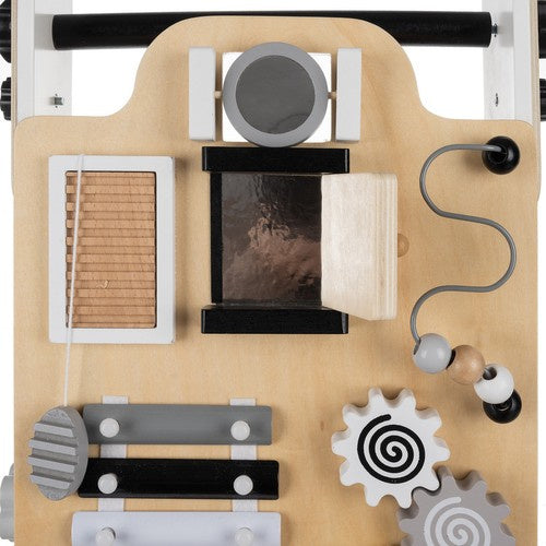 Koka ratiņi bērniem - izglītojoša Montessori apmācības platforma ar manipulatīvo dēli! Drošs jūsu bērnam - ratiņi ir izstrādāti, domājot par pašu jaunāko drošību, katrs elements ir noapaļots un izgatavots no dabīgiem, netoksiskiem materiāliem, kas ir droši mazām rociņām; izturība - staigulītis un visi koka elementi ir ārkārtīgi izturīgi un noturīgi pret intensīvu spēlēšanos, pateicoties stabilajai konstrukcijai, tie izturēs daudzas radošas spēlēšanās stundas; rosina bērnu interesi - koka braucamais ir ne tikai rotaļlieta, bet arī izglītojošs līdzeklis, kas attīsta koordināciju, iztēli un roku prasmes, katrs bērns atradīs kaut ko interesantu, sākot no zobrata pagriešanas līdz abakusa manipulācijas dēlim - ratiņi ir aprīkoti ar daudzfunkcionālu manipulācijas dēli, kas satur: šķīvjus, abakusu, labirintu, kustīgas bumbiņas, zobratus, spoguli, atveramas durtiņas un formu puzles, katra siena piedāvā atšķirīgu aktivitāti, kas nodrošina ilgas jautrības stundas un atbalsta bērna spēju attīstību; ekoloģija un ietekme uz vidi - staigulītis ir izgatavots no ekoloģiska koka un videi draudzīgiem materiāliem, padarot to par atbildīgu izvēli jūsu bērnam un planētai; regulējams roktura augstums 55-62 cm - ļauj pielāgot staigulīšu augstumu bērnam, pateicoties Dāvanas ideja, kurai ratiņi aug līdzi bērnam - darbnīca ar instrumentiem mazajiem "dari pats" entuziastiem, dāvanu ideja bērniem no 3 gadu vecuma. Atbilst Eiropas standartiem - darbnīca ir pārbaudīta atbilstoši Eiropas standartiem, tāpēc varat būt pārliecināti, ka tā ir droša! Stūmēja specifikācijas: izgatavots no dabīga koka, lietošanas drošība, stabila konstrukcija, regulējams roktura augstums 55-62 cm, izglītojošs izklaides centrs, daudzfunkcionalitāte, augstas kvalitātes meistarība, droši riteņi ar gumijas radzēm, viegli kopjami, universāls dizains, dāvanu ideja Kruzzel zīmolam, izmērs: 62 x 33 x 31 cm, svars: 3,75 kg, svars iepakojumā: 4,5 kg, materiāls: koks, cits: poliesters, alumīnija sakausējums, gumija, ABS, paredzēts bērniem, kas vecāki par 3 gadiem. Komplektā ietilpst: stūmēja klucīši šķirotājam, brūna piegādes kartona kaste, brīdinājums. Saturs: - produkti nav piemēroti lietošanai pārtikā. - nepakļaujiet skarbajiem laikapstākļiem un ugunij. - lietojiet paredzētajam mērķim. - neignorējiet ieteikumus attiecībā uz lietotāja vecumu. - nelietojiet bojātu produktu. - montāžai nepieciešams pieaugušais. - neglabājiet nesaliktas detaļas vietās, kur tām var piekļūt bērni. - iepakojums nav rotaļlieta. Rotaļlietu jāizsaiņo pieaugušajam, un iepakojums un tā daļas jānoņem bērniem nepieejamā vietā.