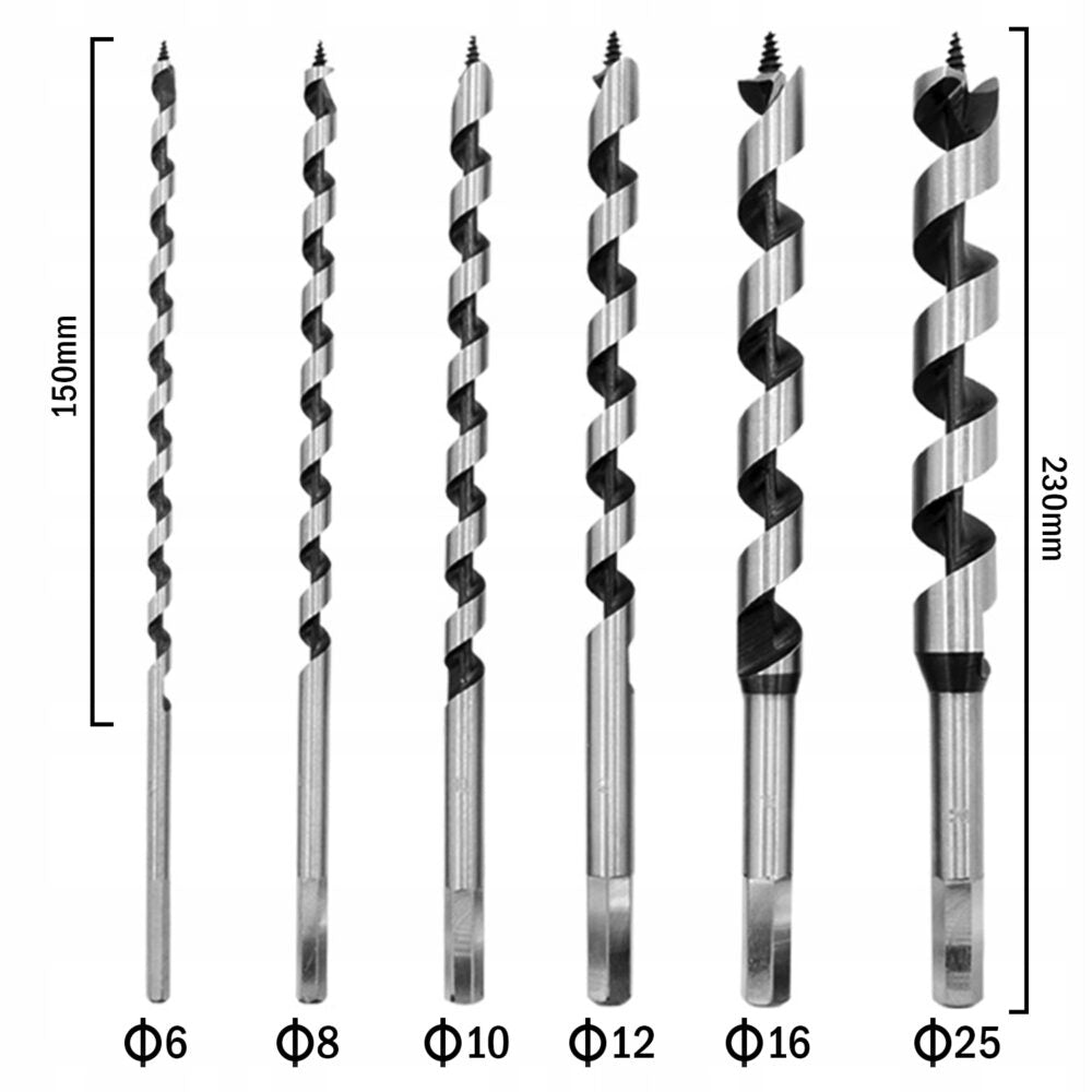 Stiprinājuma veids ir ar sešstūra formu. Urbju kopējais garums 230mm,