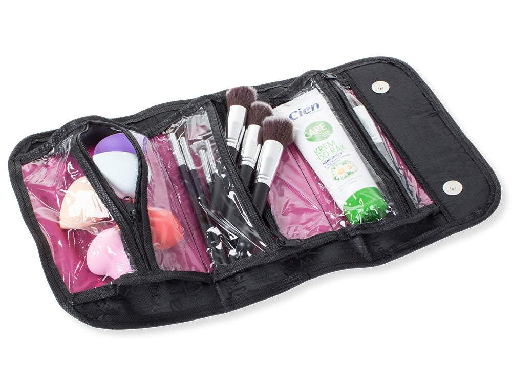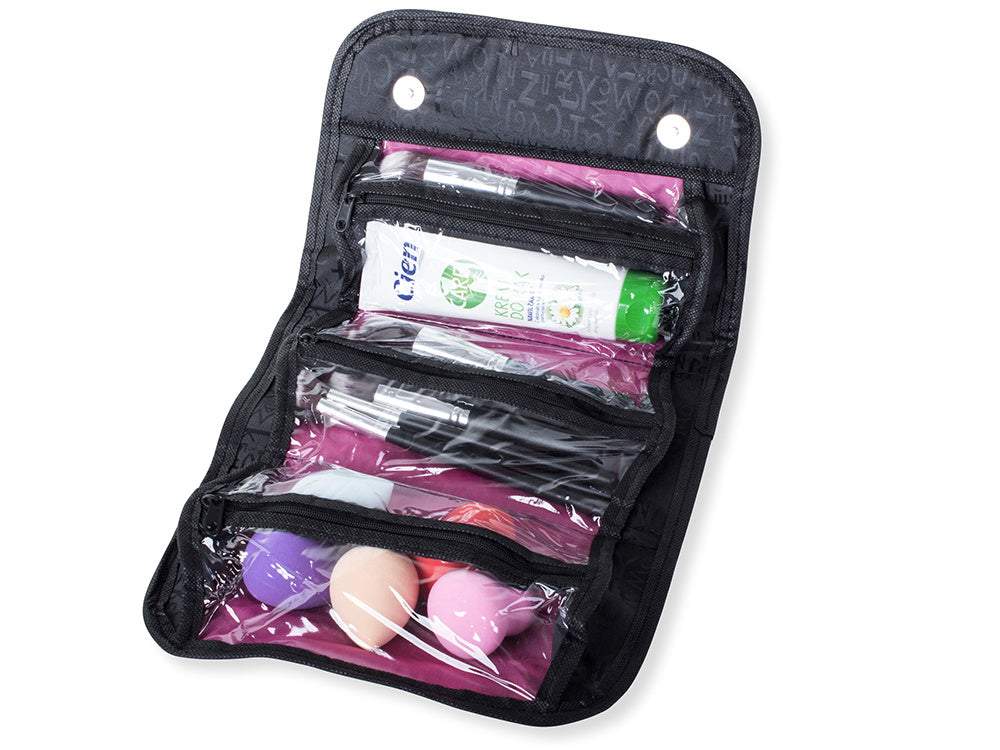 Sarullējamais maciņš kosmētikas piederumiem ir ideāls risinājums, lai jūsu kosmētika vienmēr būtu pa rokai un sakārtota. Maciņā, piemēram, būs iespējams ievietot visu ceļojumam nepieciešamo kosmētiku, piemēram, pūderi, zīmuļus, lūpu krāsas un citus aksesuārus. Pateicoties mazajam izmēram, pēc sarullēšanas maciņš lieliski iederēsies rokassomiņā vai ceļojumu somā. Maciņam ir 3 ietilpīgas kabatas ar rāvējslēdzējiem. Turklāt tam ir rokturis, pateicoties kuram maciņu var pakārt uz āķa vannas istabā vai pie durvīm.