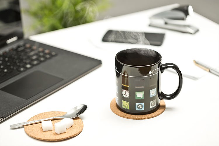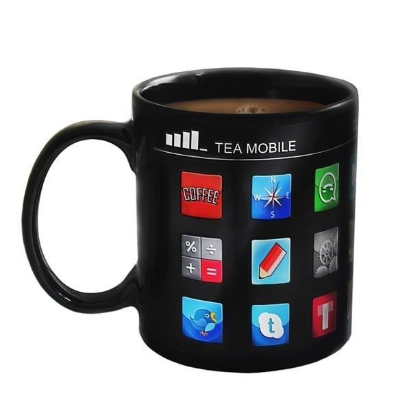 Jūs zināt, burtiski visam ir lietotne. Pa labi? Protams, tāpēc tagad uz savas... krūzes varat atrast dažas lietotnes. Žēl, ka viņi tev negatavo kafiju vai tēju, bet varbūt nākotnē. App Heat Maining Krūze ir nākamā labākā lieta šādai formas maiņai. Tukšas krūzes izskats atspoguļo jūsu garastāvokli pirms tējas pagatavošanas – tukša un rāda zemu akumulatora uzlādes līmeni. “Uzlādējiet” savu krūzi ar karstu ūdeni, lai redzētu, ka tā ir piepildīta ar lietotnēm. Funkcijas: - lietotņu krūze - melna, kad auksta un ar lietotnēm, kad karsta - jauka dāvana visiem lietotņu ķēmiem - Mazgāt tikai ar rokām, neizmantot mikroviļņu krāsnī