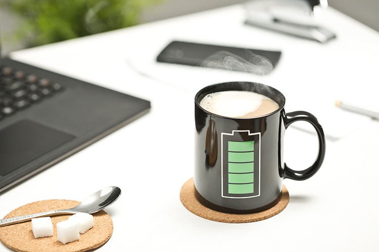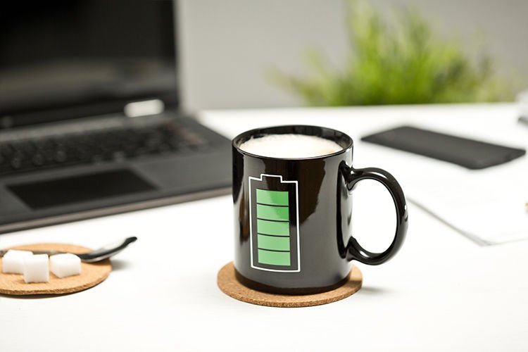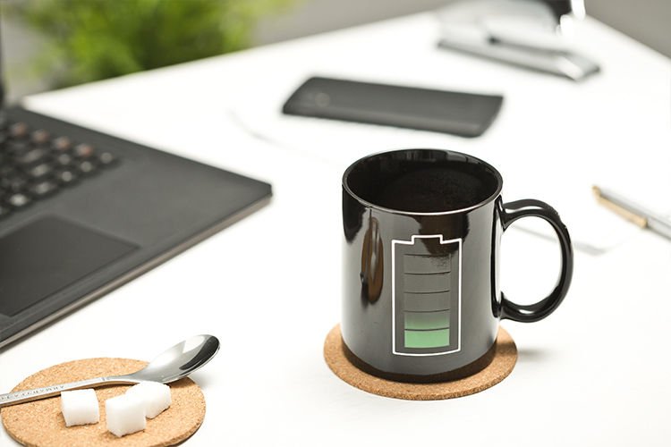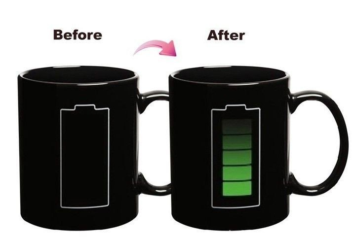 Jums dažreiz šķiet, ka neesat pilnībā uzlādēts un redzat visu melnā krāsā, līdz izdzerat pirmo kafijas vai iecienītākās tējas tasi? Šī siltuma mainīgā akumulatora krūze to lieliski parāda. Tas parāda tukšu akumulatoru, kad jūsu krūze ir auksta, un pilnībā uzlādētu akumulatoru, kad tā ir pilna ar labām un karstām lietām ;) Funkcijas: - krūze ar mainīgu akumulatoru - melna un ar neuzlādētu akumulatoru, kad tas ir auksts - gatavs darbībai un pilnībā uzlādēts, kad karsts – mazgā tikai ar rokām, nelieto mikroviļņu krāsnī