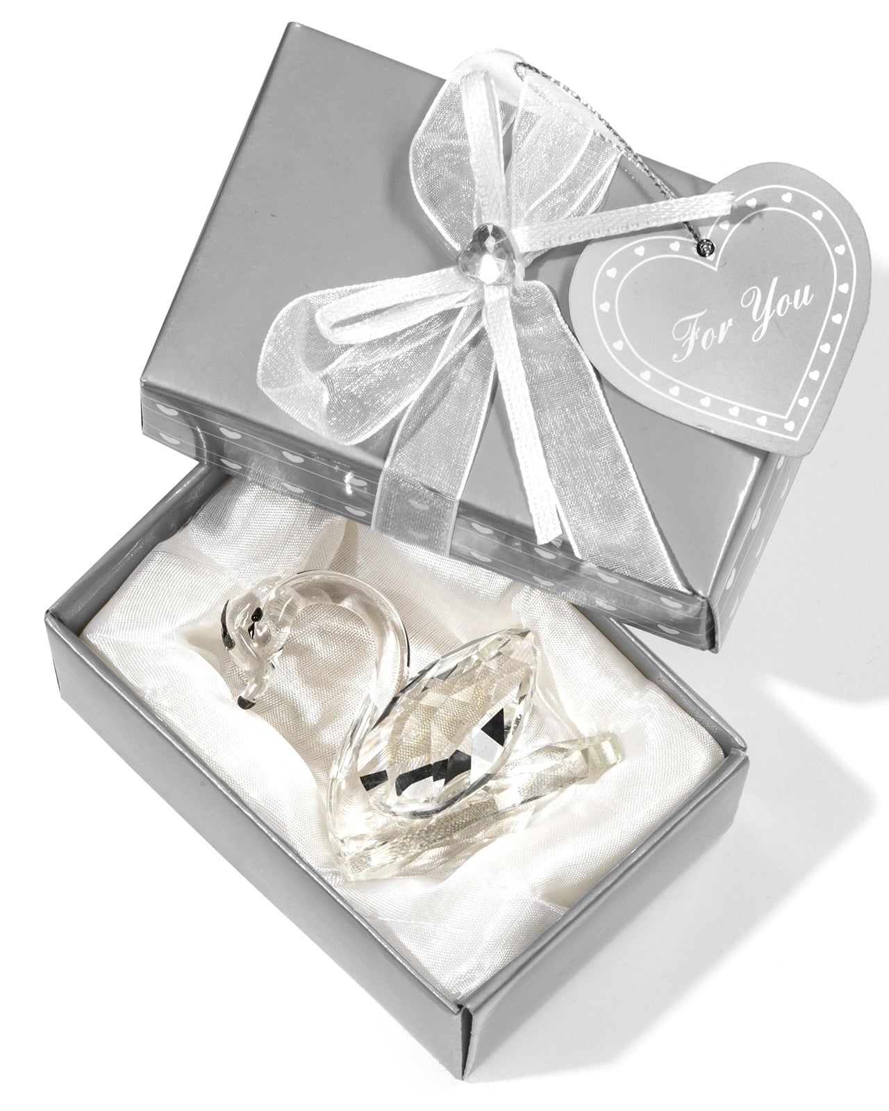 Gulbis ir karalisks putns un simbolizē mīlestību, uzticību, skaistumu un žēlastību, bet arī uzticību un lojalitāti. Gulbis bija svēts arī senajiem dieviem un svētajiem. Kristāla gulbis ir īsts saules ķērējs, ļoti dzirkstošs saules gaismā. Jūs pat varat mēģināt paskatīties uz pasauli caur mūsu gulbi, lai redzētu jaunu un labāku dimensiju. Mūsu kristāla gulbis ir unikāla dāvana unikālam cilvēkam. Tas izskatās lieliski kā dekorēts gabals jūsu viesistabā vai guļamistabā vai uz darbvirsmas kā papīra svars vai neliela un burvīga kāzu dāvana. Funkcijas: - skaists kristāla gulbis - lieliska dāvana visiem, kas jums patīk, kā arī mājas dekorēšanai, papīra svara vai kāzu dāvanai - jauks dāvanu iesaiņojums ar satīna lenti un papīra sirdi ar paldies tekstu