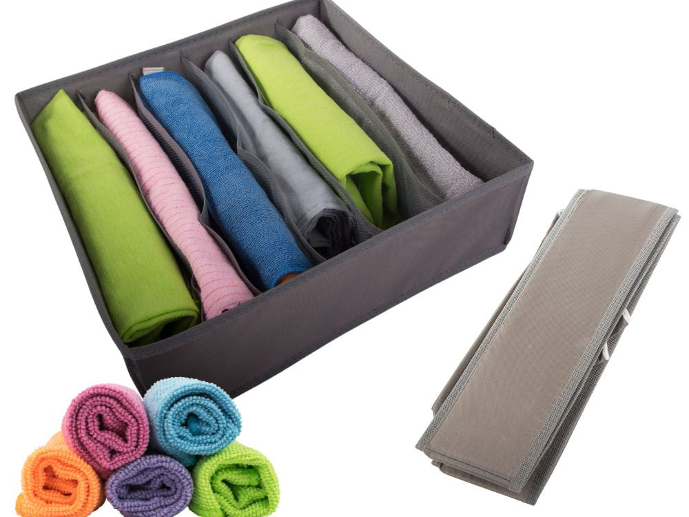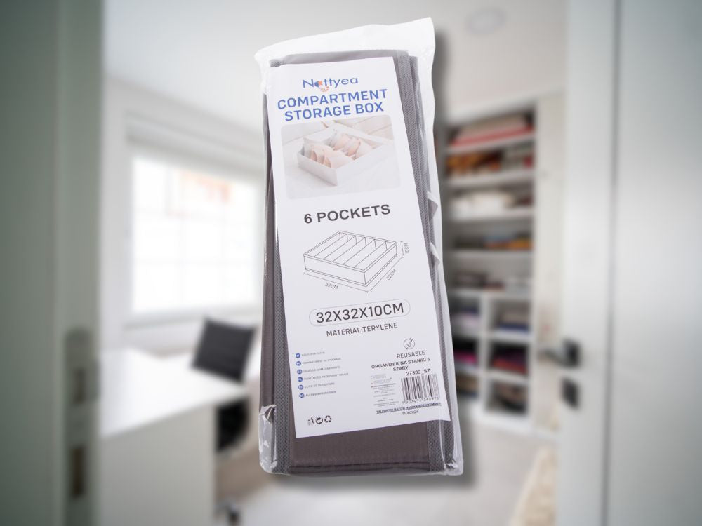 Krūštura atbalsta organizators ar 6 atvilktņu sadalītājiem, pelēks, 32x32x10cm? Praktisks krūštura organizators - 6 durvju atvērēji, pelēks, 32x32x10 cm. Šis funkcionālais organizators ir ideāls risinājums tiem, kas vēlas uzturēt kārtību savā garderobē. Ar sešiem nodalījumiem un izmēriem tas ir lieliski piemērots krūšturu, apakšveļas un citu mazu priekšmetu glabāšanai, palīdzot maksimāli izmantot vietu atvilktnēs un skapjos.? Ideāla telpas organizācija. Organizators ir izstrādāts, domājot par efektīvu telpas pārvaldību. Seši nodalījumi ļauj atdalīt apakšveļu, tādējādi atvieglojot nepieciešamo lietu ātru atrašanu un kārtības uzturēšanu garderobē. Tas ir ideāli piemērots lietošanai atvilktnēs, plauktos vai skapjos, nodrošinot labāku organizāciju un estētiski pievilcīgu uzglabāšanu.? Izturīgs un viegli tīrāms. Izgatavots no augstas kvalitātes materiāla, organizators ir izturīgs un viegli tīrāms. Tā pelēkā krāsa piešķir eleganci un iederas lielākajā daļā interjeru, ienesot jūsu garderobē svaigumu un kārtīgumu. - tehniskās specifikācijas: ✔ produkta kods: ✔ viegli tīrāms ✔ organizatora malas pastiprinātas ar kartonu ✔ plašs pielietojuma klāsts ✔ ir ✔ organizatora izmēri: ✔ materiāls: poliesters ? komplektā ietilpst: - krūštura organizators - folijas iepakojums