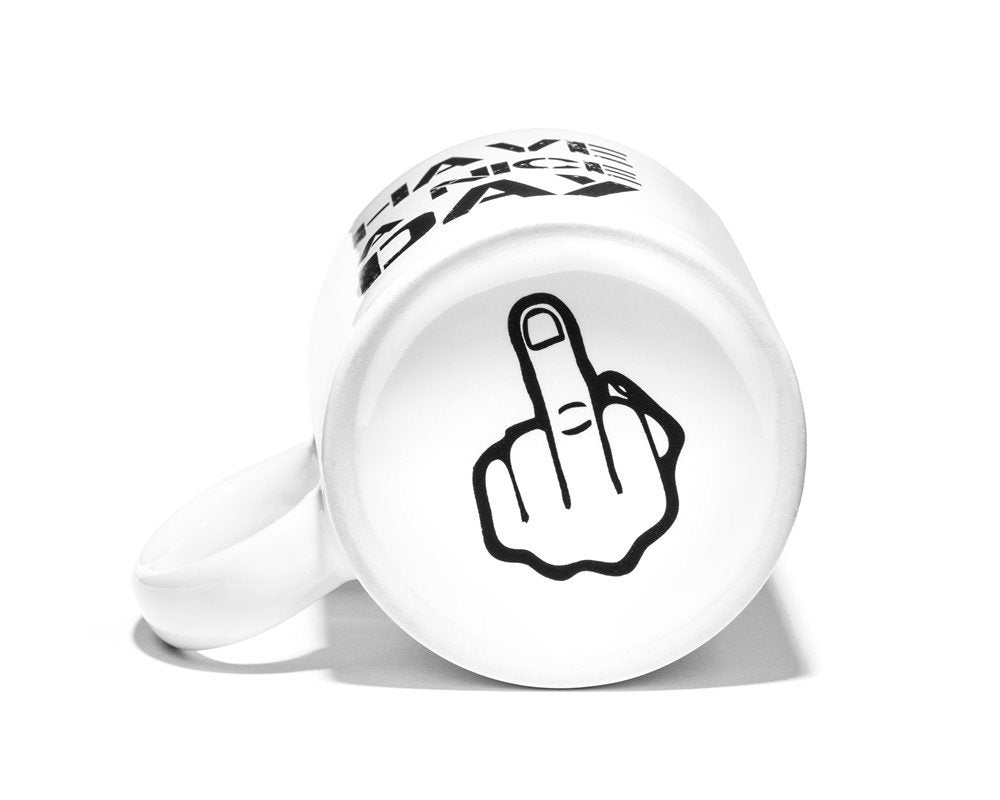 Jauku dienu krūze ar vidējo pirkstu — BALTĀ