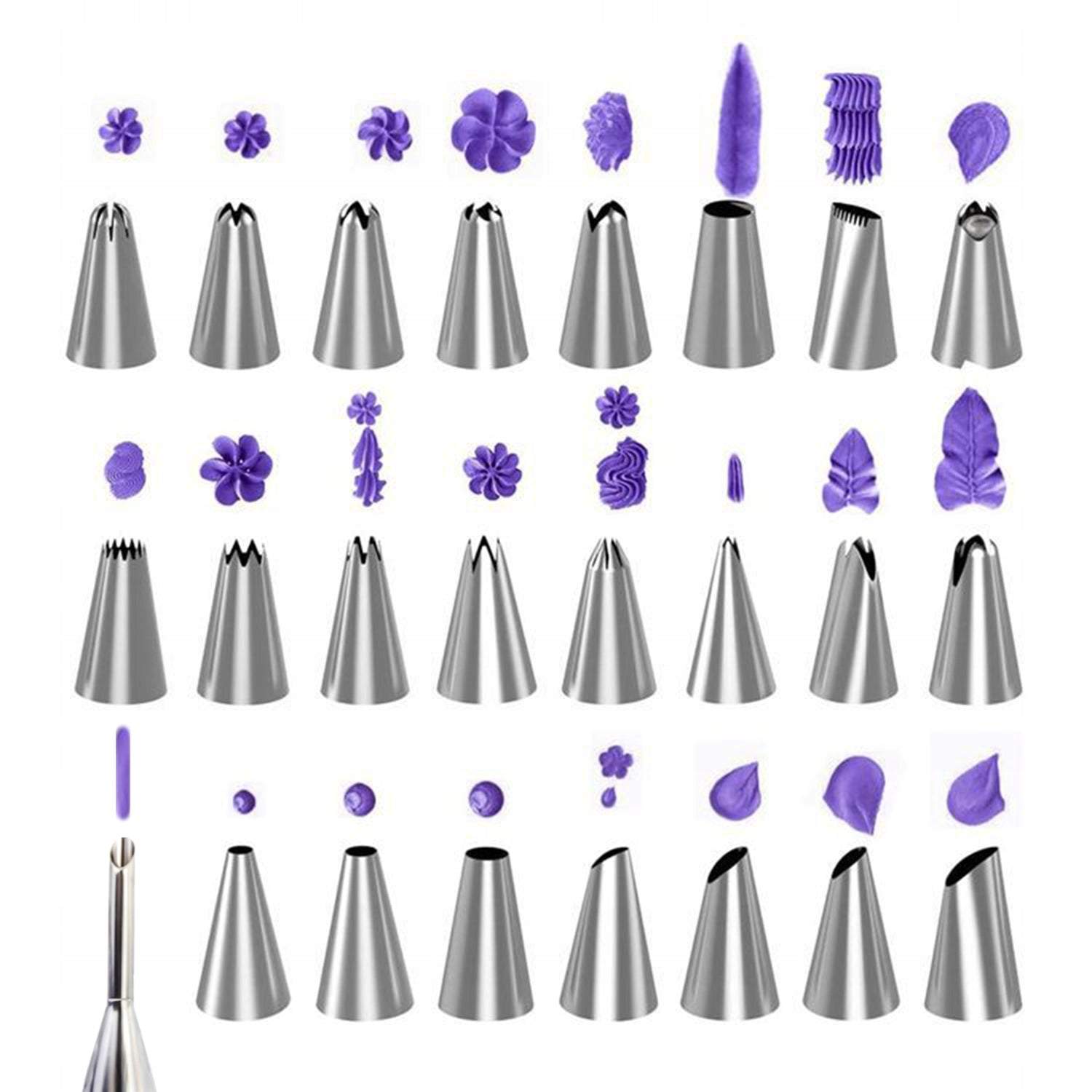 Šis komplekts ar nerūsējošā tērauda uzgaļiem un ērtām silikona piedurknēm