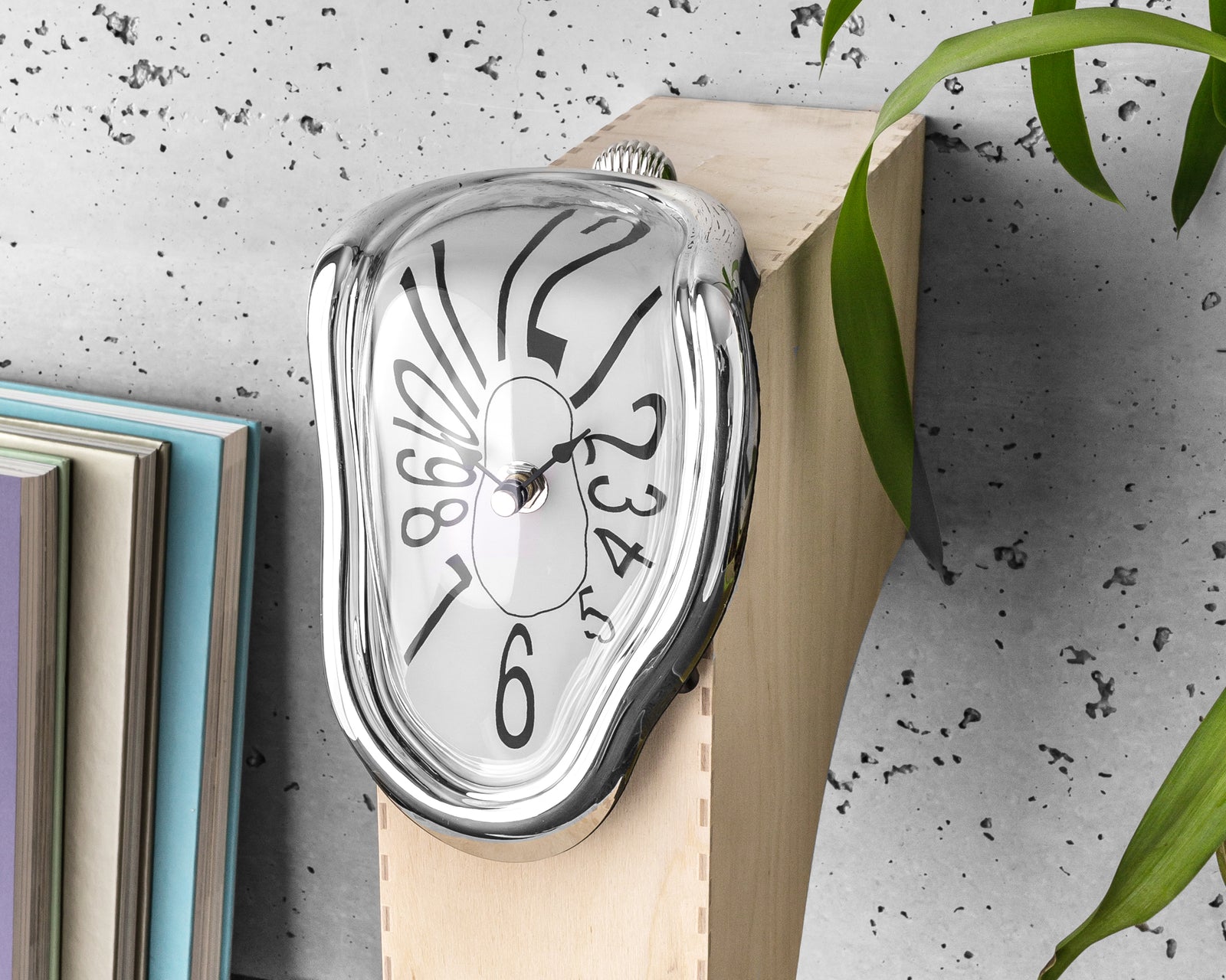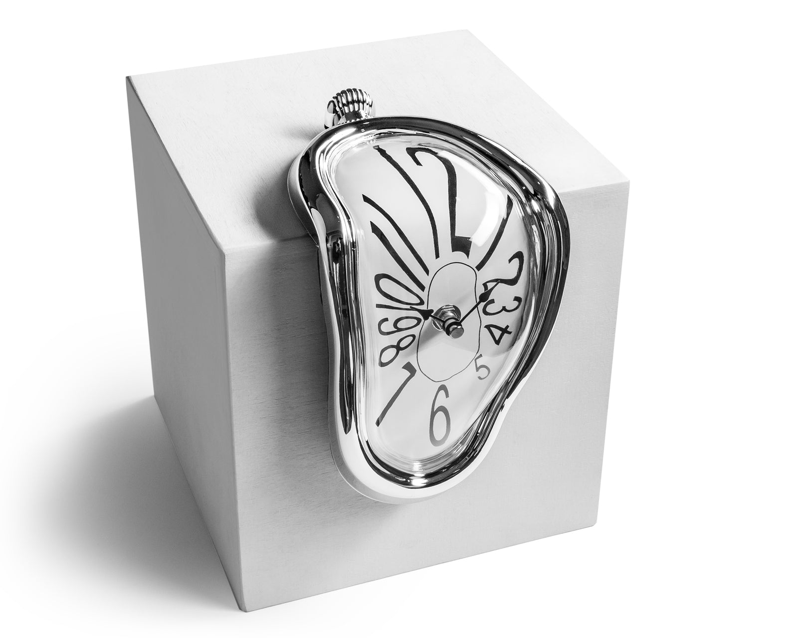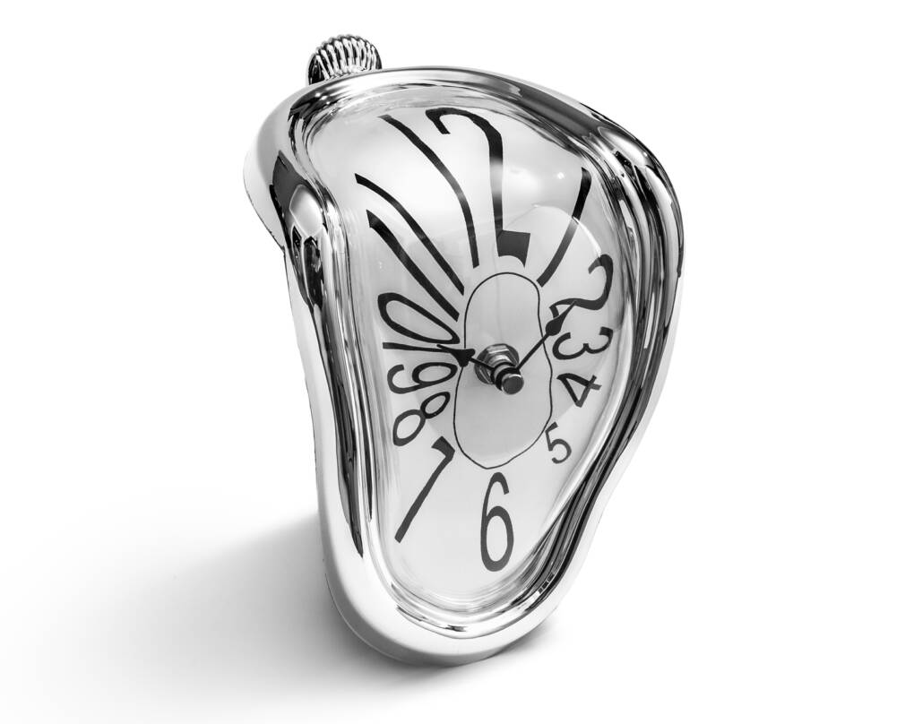 Sirreālistisks kūstošs pulkstenis, iedvesmojoties no Salvadora Dalī slavenās gleznas. Funkcijas: - unikāls kūstošais pulkstenis ir neparasts pulksteņa iedvesmas avots jūsu mājām, guļamistabai, birojam vai kabinetam - pulksteņa dizains ir moderns un vienlaikus elegants - pulksteņa ciparnīca ir aizsargāta ar stiklu, plastmasa izskatās kā hromēta - novietota uz plaukta, galda vai galda mala radīs WOW efektu - divas manuāli regulējamas rokas - nepieciešama 1 AA baterija (nav iekļauta) - izmērs: 11,8x15x18 cm - pieejams arī ar romiešu cipariem - krāsaina dāvanu kastīte