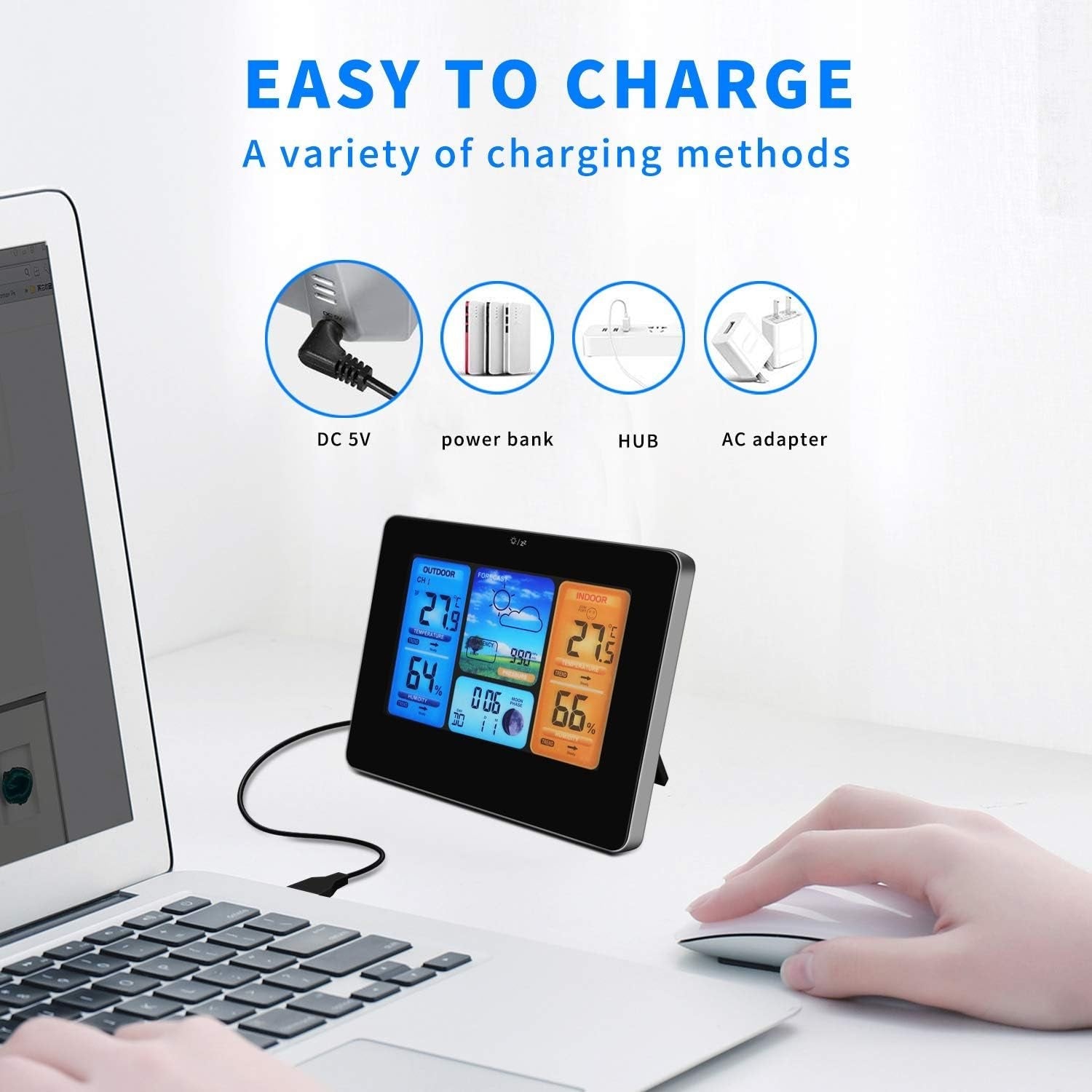Ierīcei ir moderns dizains, tāpēc tā noteikti iederēsies jebkurā telpā. Ierīci var novietot uz galda, plaukta vai piekārt pie sienas. Āra sensors tiek darbināts ar baterijām (2x LR6 AA) un meteoroloģiskā stacija ar baterijām (2x LR6 AA) vai caur USB kabeli. Produktam ir krāsains, labi nolasāms LCD displejs.