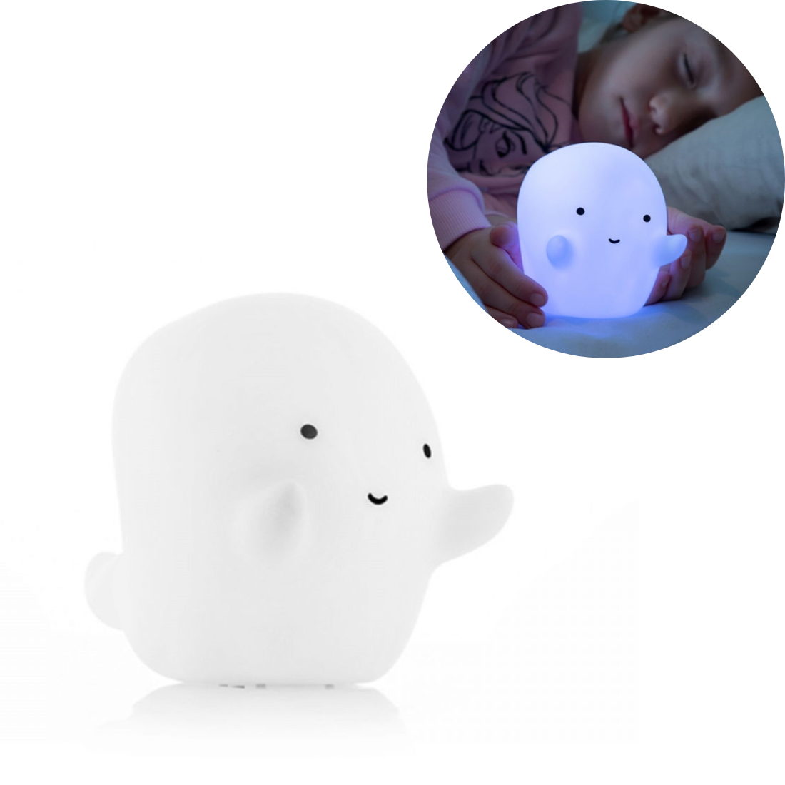 Jautra spoka formas LED lampa. Ideāli piemērota bērniem. Var izmantot kā lampu, naktslampiņu, rotaļlietu un kā dekoru bērnu istabai.