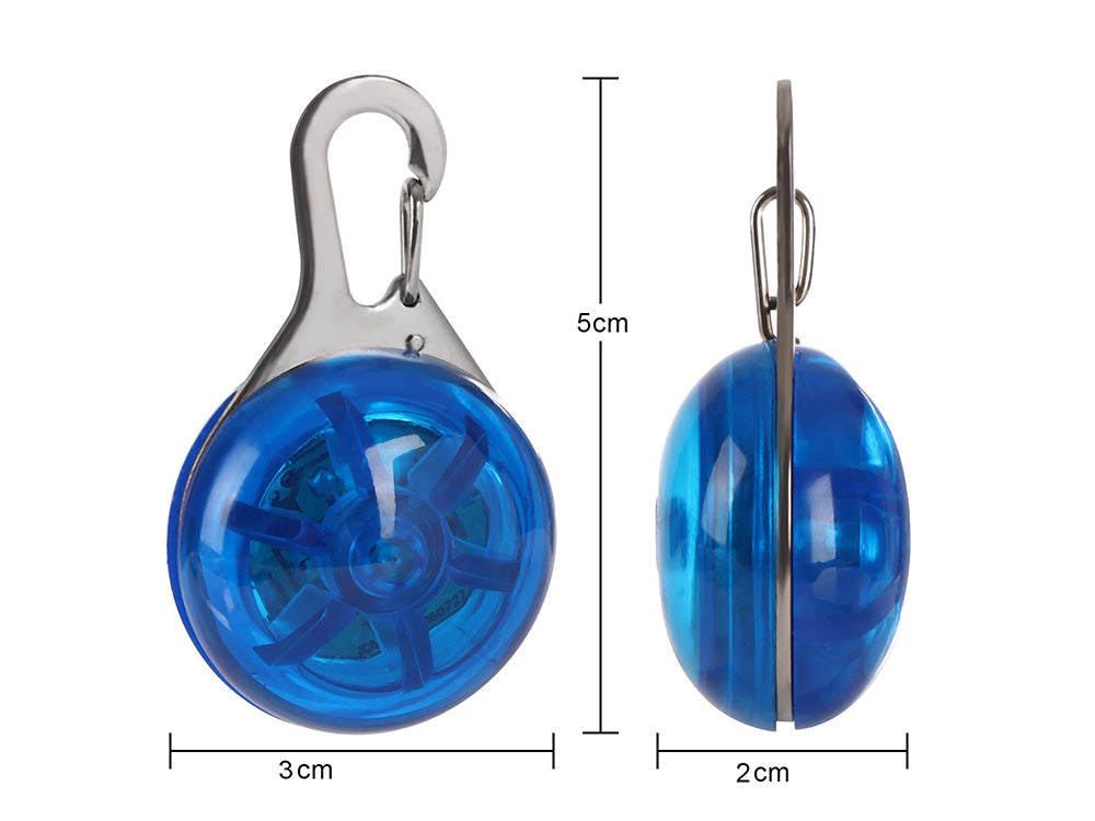 Gaismas LED piekaramā lampa suņu/kaķu kakla siksnai/kaklasiksnai - gaismas lampa, kas piestiprināta pie kakla siksnas, ir ideāls risinājums mūsu mājdzīvniekiem. Tā būs ideāli piemērota pastaigām ar suni vai kaķi pēc tumsas iestāšanās. To var ne tikai piestiprināt pie mājdzīvnieka kakla siksnas, bet arī uzstādīt, piemēram, pie mugursomas, ņemt līdzi dažādos ceļojumos vai piestiprināt pie velosipēda. Apgaismojums pasargās ne tikai jūsu mājdzīvnieku no negaidīta negadījuma, bet arī jūs. Kulons ir apaļš un tam ir metāla āķis, ko var piestiprināt pie mājdzīvnieka kakla siksnas vai pavadas. Kulons ir ļoti viegls un izturīgs pret laikapstākļiem, taču tas var tikt bojāts, kad jūsu mājdzīvnieks peld. Lampai ir tērauda klipsis, kas var izturēt milzīgu spēku, tāpēc lampa nesaplīsīs. To var arī lieliski piespraust pie atslēgām, ļaujot jums bez problēmām atvērt durvis pēc tumsas iestāšanās. Kulons ir aprīkots arī ar LED gaismu. Gaisma padarīs jūs redzamu vakara pastaigu laikā. Gaismu ir ļoti viegli lietot. Viss, kas jums jādara, ir nospiest pogu gaismas aizmugurē, un tā iedegsies ar pastāvīgu gaismu. Divreiz nospiežot, gaisma sāks pulsēt. Vēl viens klikšķis liks tai lēni mirgot. Tehniskās specifikācijas: - materiāls: plastmasa - augstas kvalitātes apstrāde - redzamība: - barošanas avots: - trīs gaismas režīmi: pulsējošs, lēni mirgojošs un nepārtraukts - viegls un laikapstākļiem izturīgs - LED gaisma - gaismu ir ļoti viegli lietot - ir metāla āķis - var izmantot kā kakla piekariņu, bet arī uz mugursomas, velosipēda utt. - viegli maināmas baterijas - krāsa: zila - CE sertificēts Izmēri: - garums: - platums: - augstums: Komplektā ietilpst: - LED gaisma