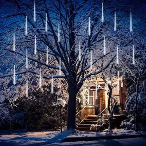 Ziemassvētku gaismiņas – meteorīti. Šajā daudzpusīgajā Ziemassvētku dekorācijā ir LED gaismas, kas krīt kā sniegs. Tās var izmantot iekštelpās vai
