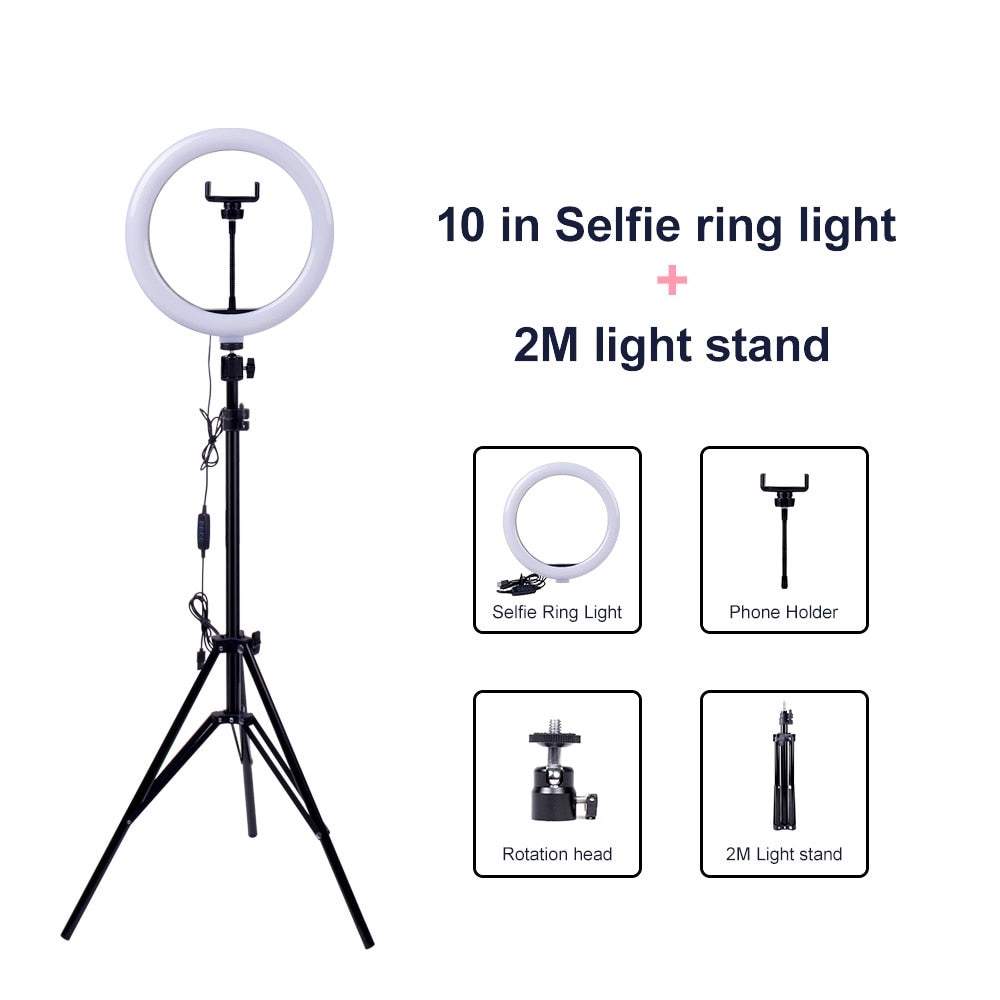 LED riņķis, gredzenveida lampa ar 2m statīvu un telefona turētāju
