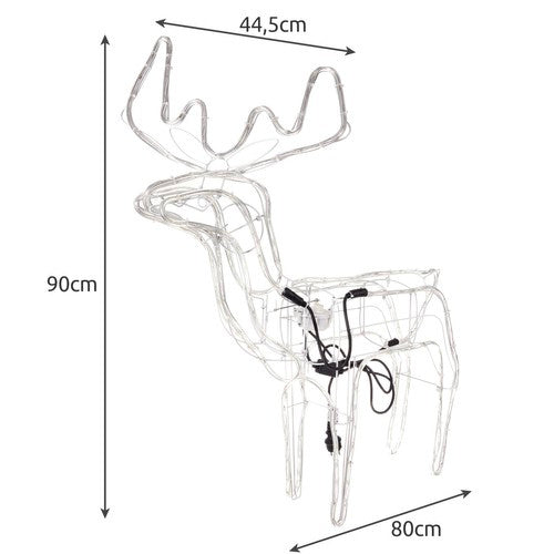 3D āra un iekštelpu apgaismojuma ziemeļbriedis ar kustīgu galvu + zibspuldzi ru choma galva - absolūts Ziemassvētku rotājumu hīts. Tas ir skaists Ziemassvētku dekoru papildinājums. Tas bez problēmām iederēsies jebkurā telpā, vienlaikus uzsildot savu tēlu. Šī ziemeļbrieda lielākā pievilcība ir automātiskā galvas kustība. Pieslēdzot elektrībai, galva griežas pa kreisi un pa labi. Dizainers - dekorācija ir izgatavota uz metāla rāmja, nokrāsota baltā krāsā. Tam ir mirdzošas LED diodes, kas ievietotas caurspīdīgā caurulē. Ieslēgts tas rada skaistu efektu. LED 3D figūra, kas ļauj jums radīt Ziemassvētku vecīša zemes efektu jūsu mājās. Kustīgs ziemeļbriedis, protams, atgādina Ziemassvētku vecīša kamanas. Ar daudz vietas, jūs varat rasties kārdinājums izmantot šādu rotājumu, dekorējot savu dārzu vai māju. Enerģiju taupošas LED diodes + zibspuldze - LED diodes ir ārkārtīgi energoefektīvas un paredzētas ilgstošai darbībai, komplekts nodrošinās daudzas apgaismojuma stundas un nepalielinās mūsu svētku izdevumus. Pateicoties to energoefektivitātei, tās lieliski darbosies kompozīcijās, kas paliek ieslēgtas ilgu laiku, piemēram, naktī. Papildu apgaismojuma funkcija ir zibspuldze zilā krāsā, kas padara figūru pievilcīgu un piesaista garāmgājēju uzmanību! Gan ārā, gan iekštelpās – gaismas ziemeļbriedis ir piemērots lietošanai gan iekštelpās, gan ārā. Tam ir IP 44 aizsardzības klase. Tas nozīmē, ka tam ir aizsardzība pret priekšmetiem, kas lielāki par 1 mm, un aizsardzība pret ūdens šļakatām no visiem virzieniem. Specifikācija – pastāvīgās gaismas krāsa: auksti balta; zibspuldzes krāsa: zila; lietošanai: iekštelpās, ārā; jauda: 12 W; IP44; barošanas kabeļa garums: 1,3 m; diožu skaits: 216 gab.; ziemeļbrieda garums: 80 cm; ragu platums: 44,5 cm; ziemeļbrieda maksimālais augstums: 90 cm; svars: 2,450 kg; svars iepakojumā 3,123 kg. Specifikācija – pastāvīgās gaismas krāsa: auksti balta; zibspuldzes krāsa: zila; lietošanai: iekštelpās, ārā; IP44 jauda: 12 W; barošanas kabeļa garums: 1,3 m; diožu skaits: 216 gab. Ziemeļbrieža garums: 80 cm; raga platums: 44,5 cm; ziemeļbrieža maksimālais augstums: 90 cm; svars: 2450 kg; svars iepakojumā: 3,123 kg. Dekorācija kalpos ne tikai kā Ziemassvētku rotājums, piemēram, zem eglītes, bet arī lieliski rotās dzīvokli un kalpos kā atmosfērisks fons fotogrāfijām. Parādiet radošumu un izmantojiet to, lai radītu interesantas fotogrāfijas un selfijus, kas patiks visai pasaulei. Tā izskatās izcili ikvienā vietā, kur to novietojam, piešķirot neticamu atmosfēru un raksturu telpas vai terases dārzam. Tā ir arī lieliska dāvana. Uzdāviniet saviem mīļajiem un sev neaizmirstamus Ziemassvētkus.
