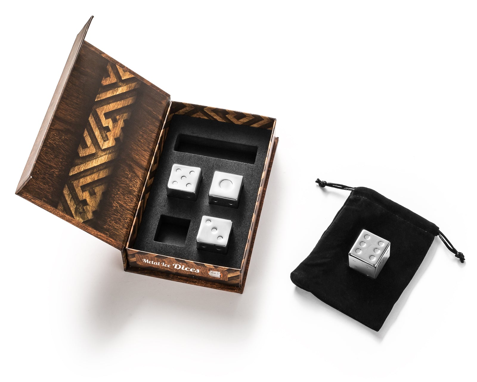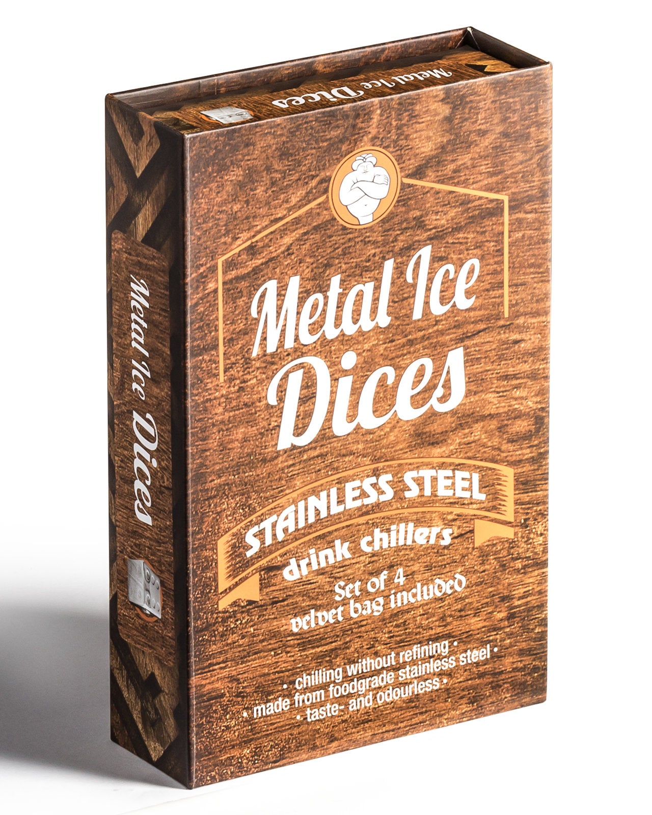 Ne tikai spēlmaņiem ;) Lieliski metāla ledus kauliņi čilēšanai bez rafinēšanas. Funkcijas: - 4 metāla kauliņu ledus kubi - izgatavoti no nerūsējošā tērauda - atdzesēšana bez attīrīšanas - bez garšas un smaržas - 4 stundas sasaldēšana un daudzas stundas atdzesēšana - pirms pirmās lietošanas izskalot - kauliņu izmērs: 2,5 x 2,5 cm - ieskaitot melnu samta soma - jauks dāvanu gard box iepakojums - lieliska dāvana daudziem gadījumiem