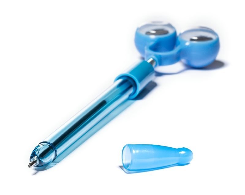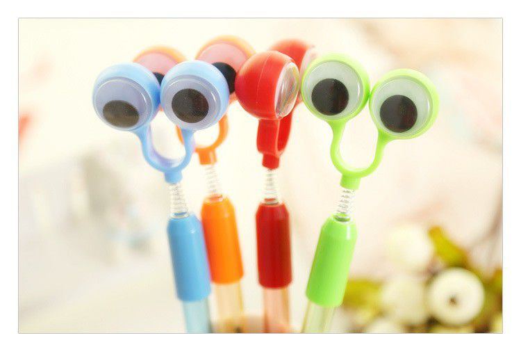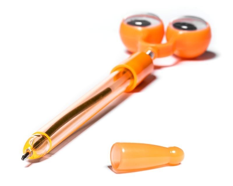 Funkcijas: - smieklīgas lodīšu pildspalvas ar lielām acīm - ar maināmu pildspalvu - rakstīšanas krāsa: zila - pieejamas četras krāsas: sarkana, zaļa, oranža un zila (izlases sūtījums)