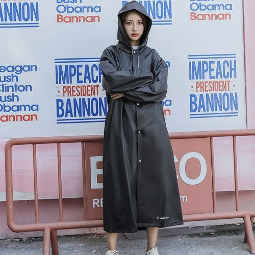 lietusmētelis ir īpaši garš, un tam ir kapuce ar savilkšanas aukliņām ideālam