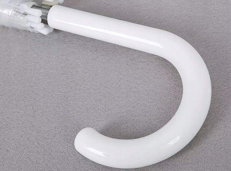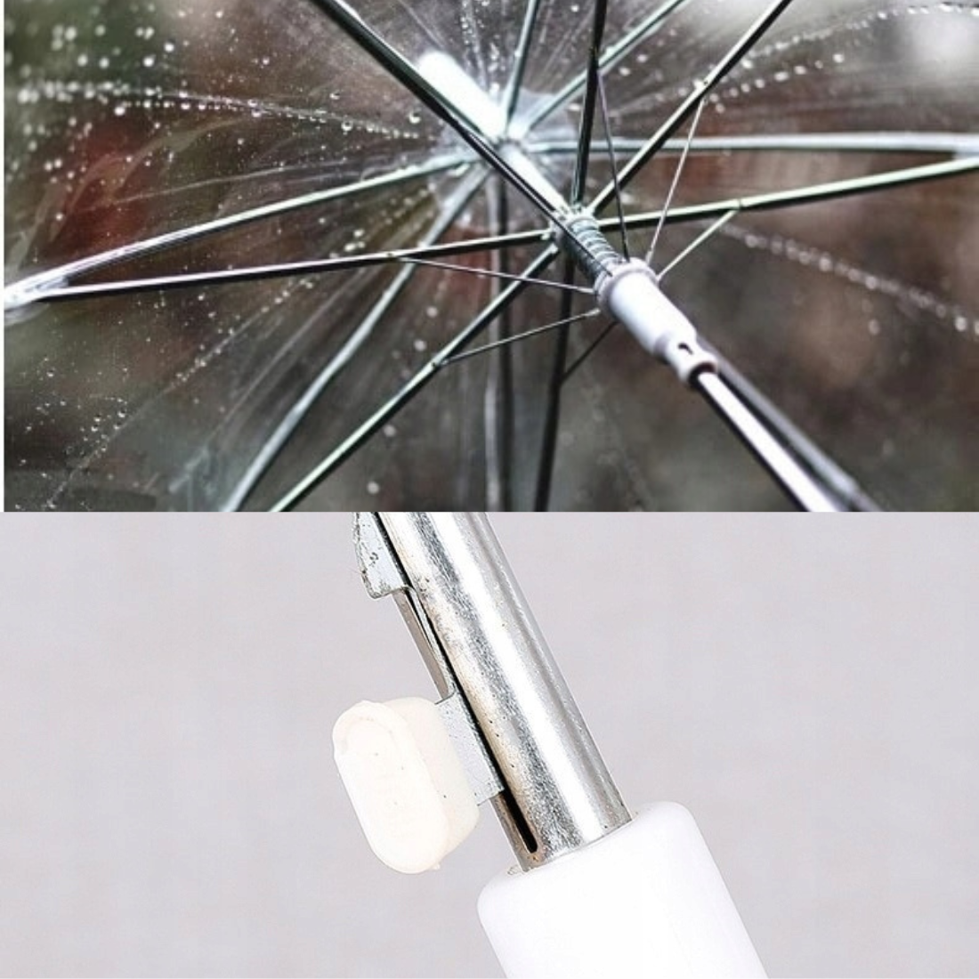 Caurspīdīgais lietussargs ir aprīkots ar elegantu, ergonomisku rokturi ērtai lietošanai un pārnēsāšanai. Kad beidz līt, vienkārši piestipriniet to pie plaukstas locītavas un dodieties tālāk!