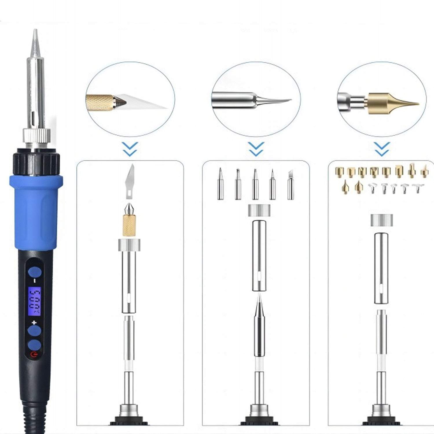 Komplektā ietilpst lodāmurs ar LCD displeju, vāciņš, pincete, 5 uzgaļi, skārds,