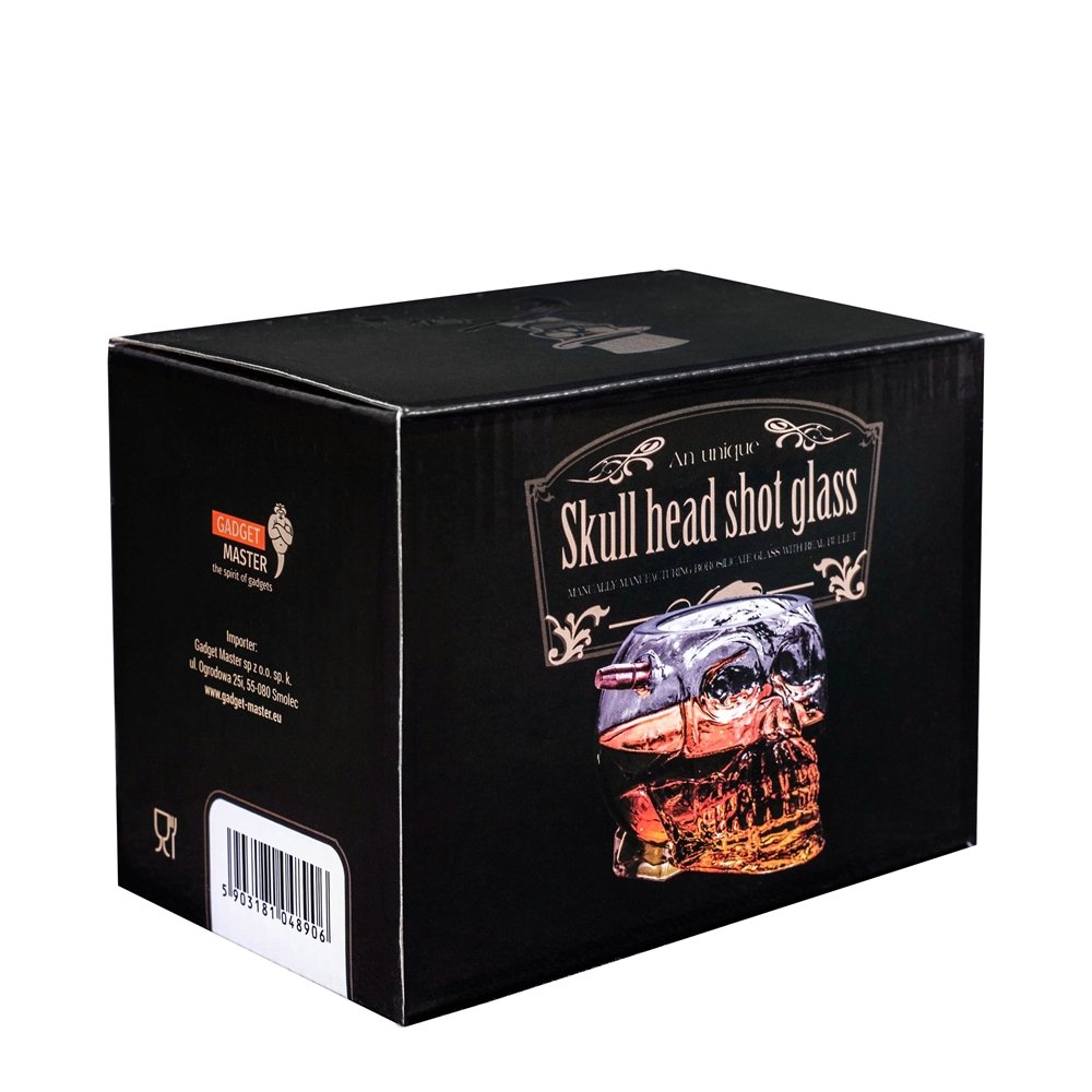 Funkcijas: - ar rokām pūsts galvaskausa stikls ar īstu lodi - izgatavots no augsta borsilikāta stikla - lieliska vīriešu dāvanas ideja daudziem gadījumiem - stikls nesatur šaujampulveri vai svinu, tāpēc tas ir 100% drošs lietošanai - mazgā tikai ar rokām, lai lietošana būtu ilgstoša - krāsu dāvanu kastīte