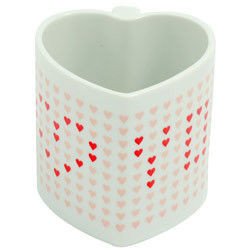 Jums nekas nav jālasa vai jāklausās vārdos, lai saprastu karsto mīlestības apliecinājumu, ko jūs redzēsit, ielejot karstu ūdeni sirds krūzē. Šī krūze ir lieliski piemērota tiem no jums, kuri visi esat iemīlējušies un vēlas, lai krūze to parādītu. Karstumjūtīgais pārklājums atklāj mīlestības vēstījumu, kad krūzē ir ieliets karsts ūdens – vērojiet, kā sirdis jūsu acu priekšā pārvēršas vārdos! Tam ir arī sirds forma, lai jūs varētu būt pārliecināti, ka ikviens, kas no tā dzer, jūt mīlestību, pat ja neprot lasīt! Funkcijas: - maģiskas krāsas changig krūze - sirds formas - ar mazām sarkanām sirsniņām aukstumā - ar mīlestības atslābināšanu, kad karsts - lieliska dāvana jūsu otrajai pusei! - ES nodrošināta kvalitāte, pārtikai nekaitīgs porcelāns - mazgājams tikai ar rokām - nemazgājams trauku mazgājamā mašīnā vai mikroviļņu krāsnī