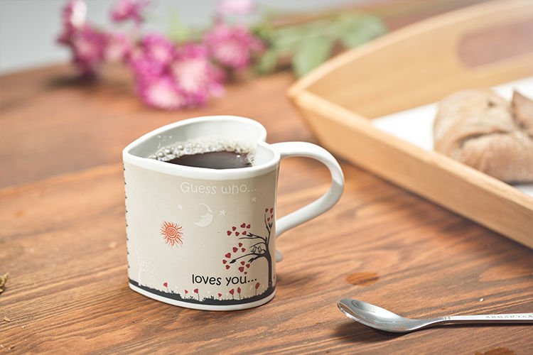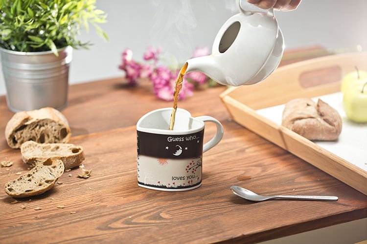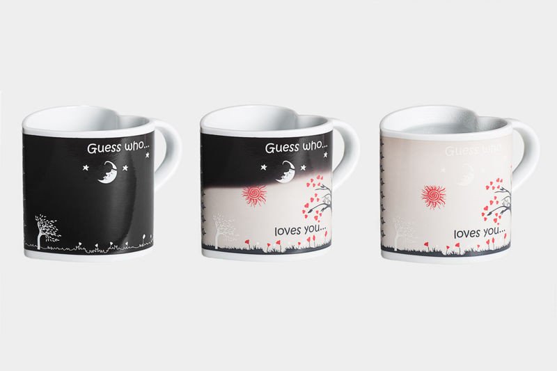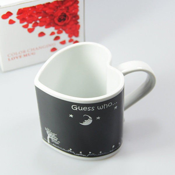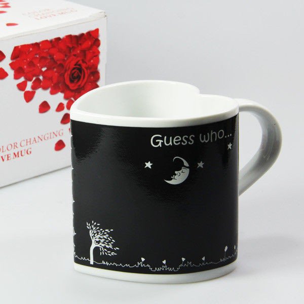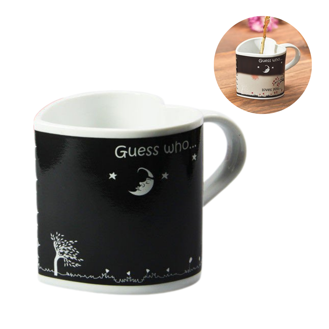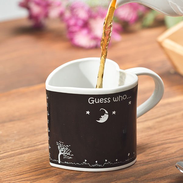 Burvju krāsu mainoša krūze sirds formā. Ielej karstu ūdeni un pagaidi nedaudz, lai redzētu krāsu mainīšanās efektu. Mazgāt tikai ar rokām! Teksts uz krūzes angļu valodā.