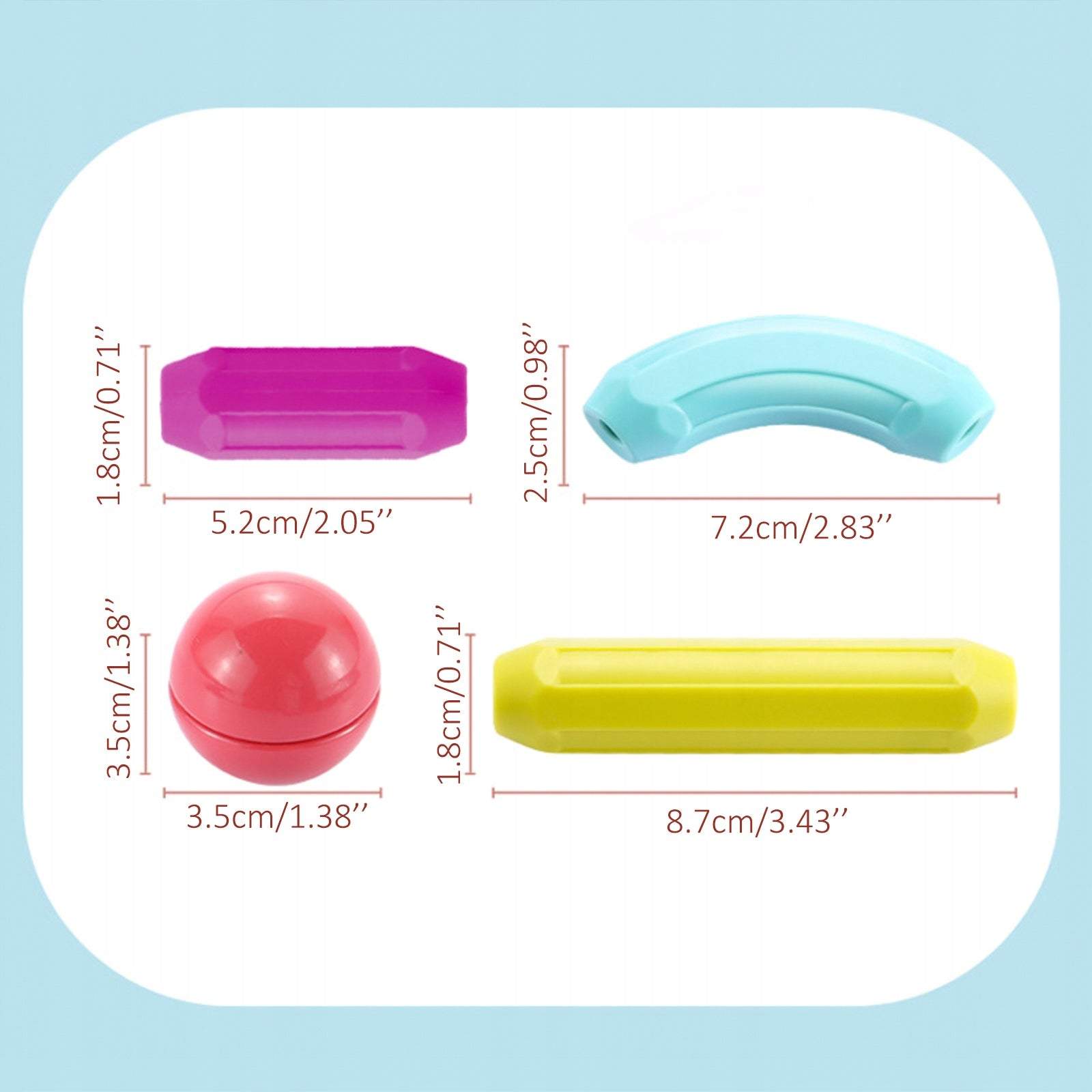 Bumbiņu diametrs ir 3,5 cm, kas padara tās viegli lietojamas mazajām rociņām.
