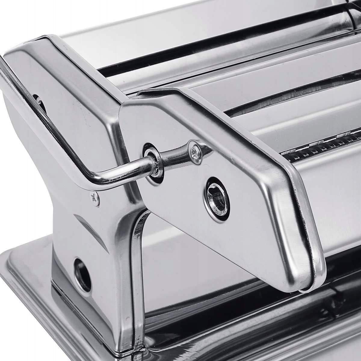 Mūsu mašīna ir izgatavota no augstas kvalitātes nerūsējošā tērauda , un tās asmeņi ir izgatavoti no niķelēta tērauda, kas nodrošina ilgu laiku bez problēmām , un, pateicoties regulējamam griešanas biezumam, jūs varat pielāgot makaronus savām kulinārijas vēlmēm. . Regulēšana tiek veikta, izmantojot ierīces sānos esošo pogu, kas ļauj izvēlēties vēlamo mīklas biezumu.