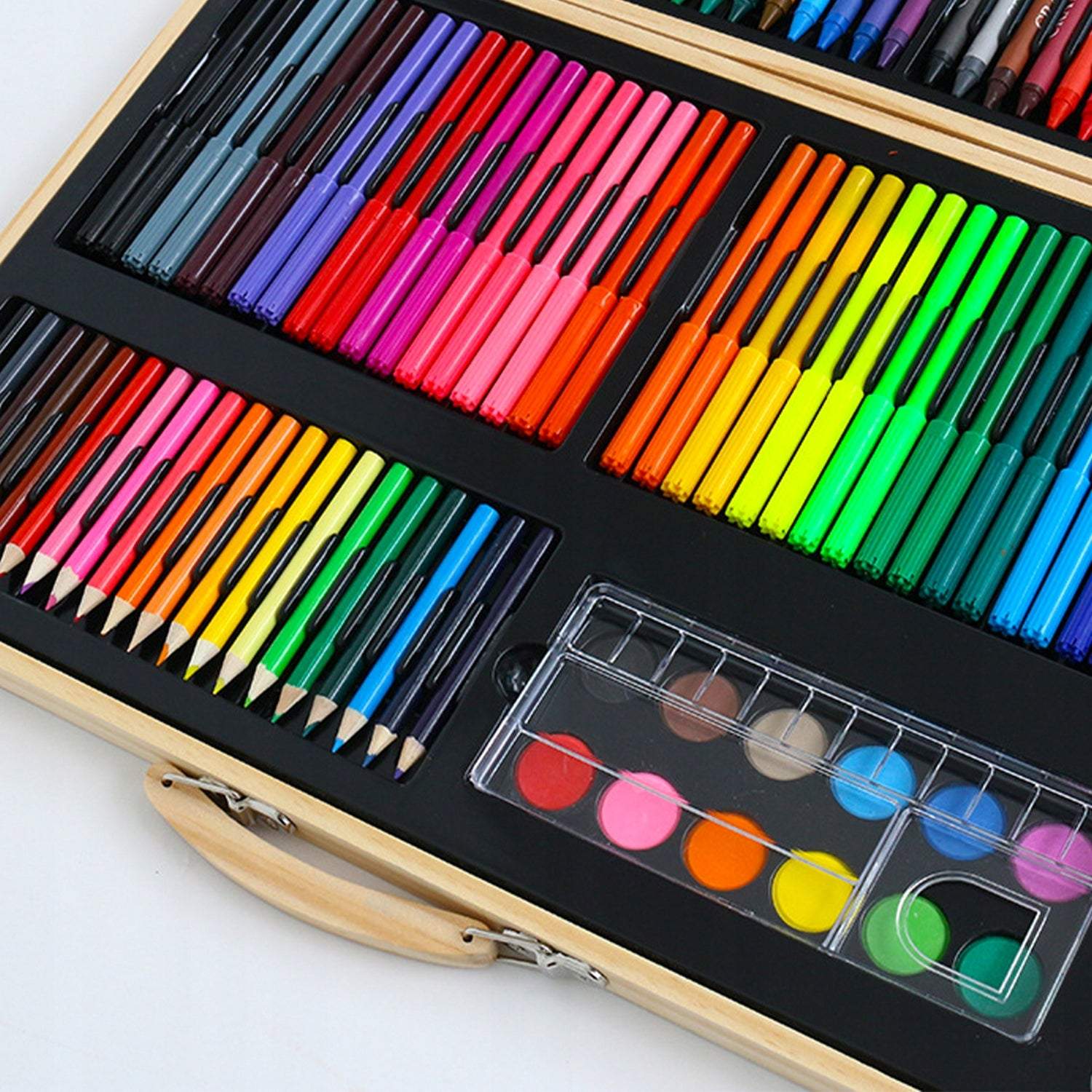Šo mākslas komplektu īpašu padara dabīgās egles koka čemodāns. To var aizslēgt